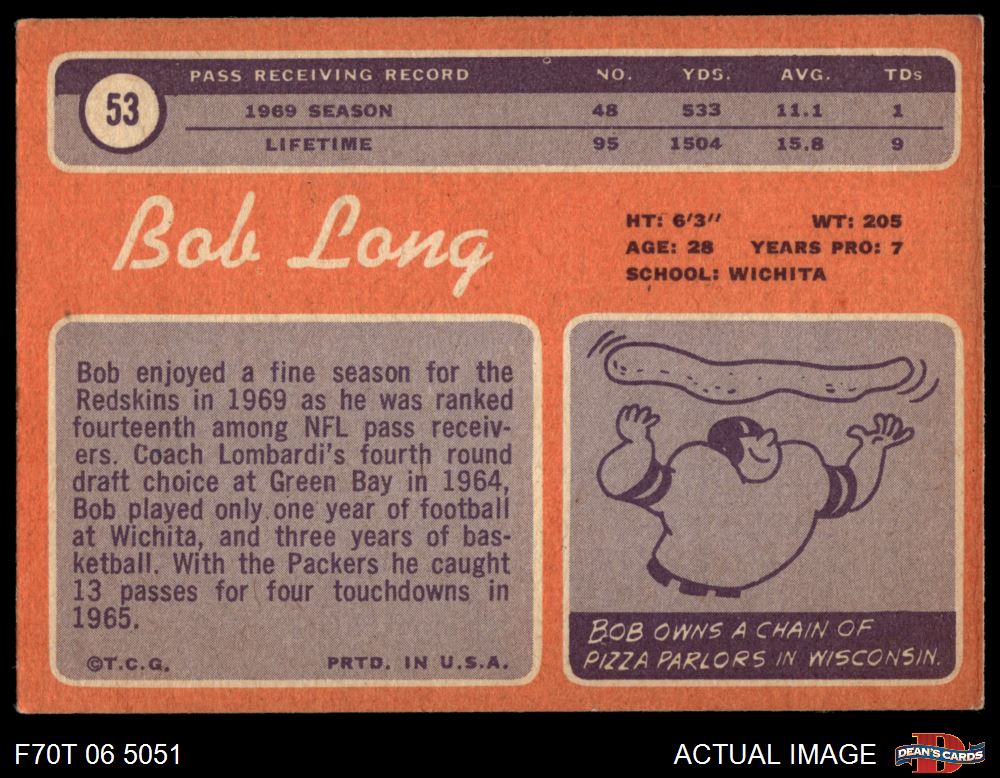 1970 Topps #53 Bob Long 4 - VG/EX