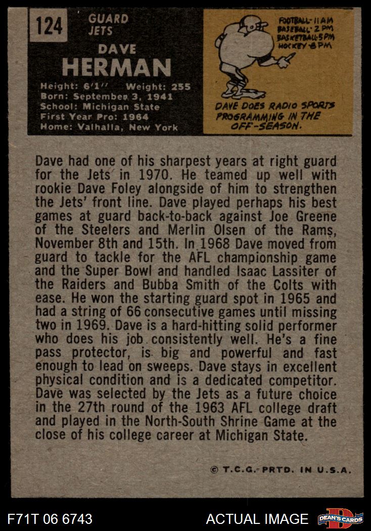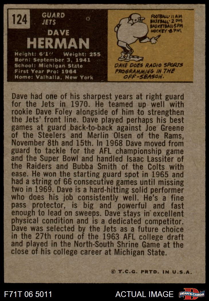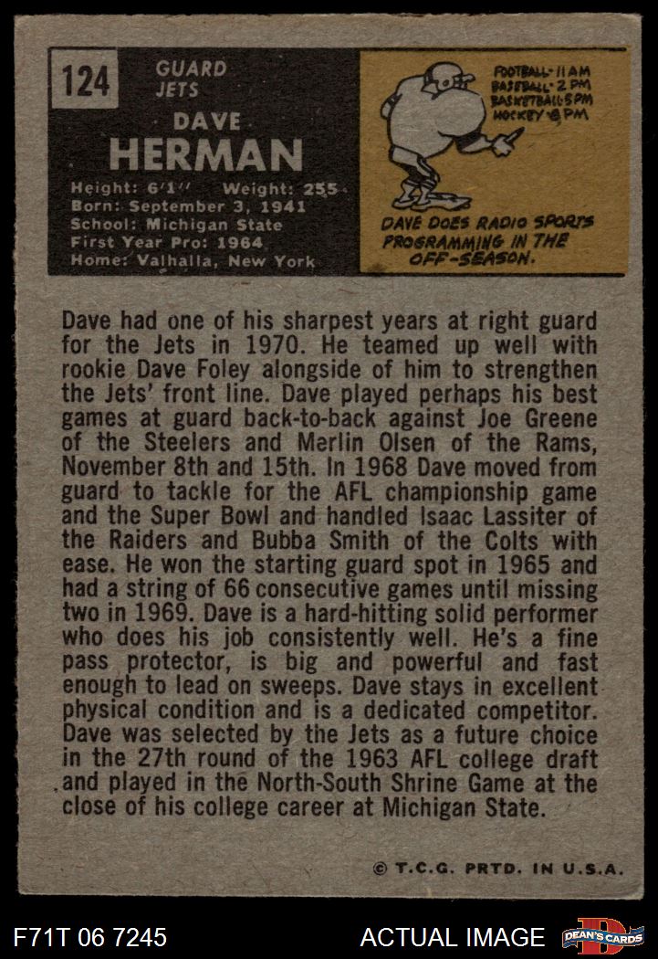 1971 Topps #124 Dave Herman 4 - VG/EX