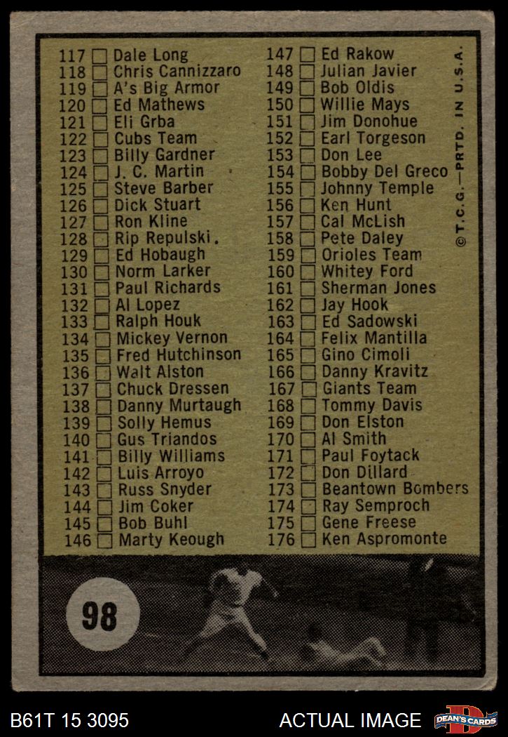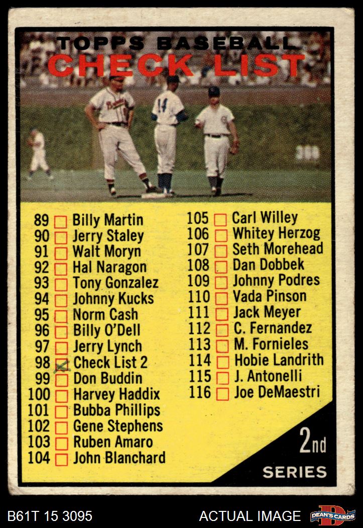 1961 Topps #98 RED Checklist 2 2 - GOOD
