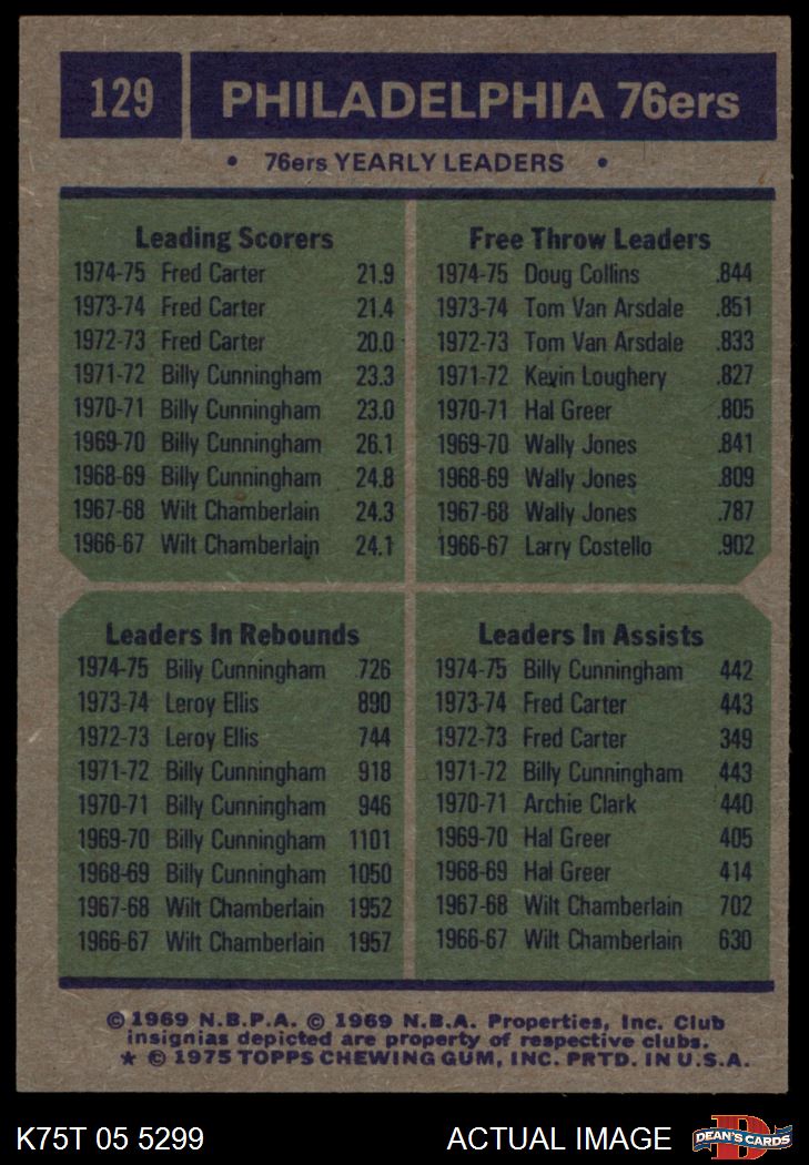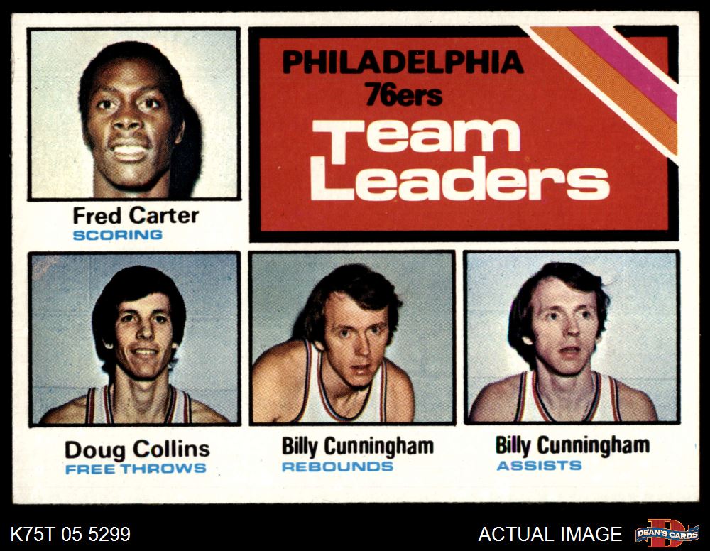 1975 Topps #129 - Fred Carter / Billy Cunningham / Doug Collins 76ers Leaders 1 - POOR