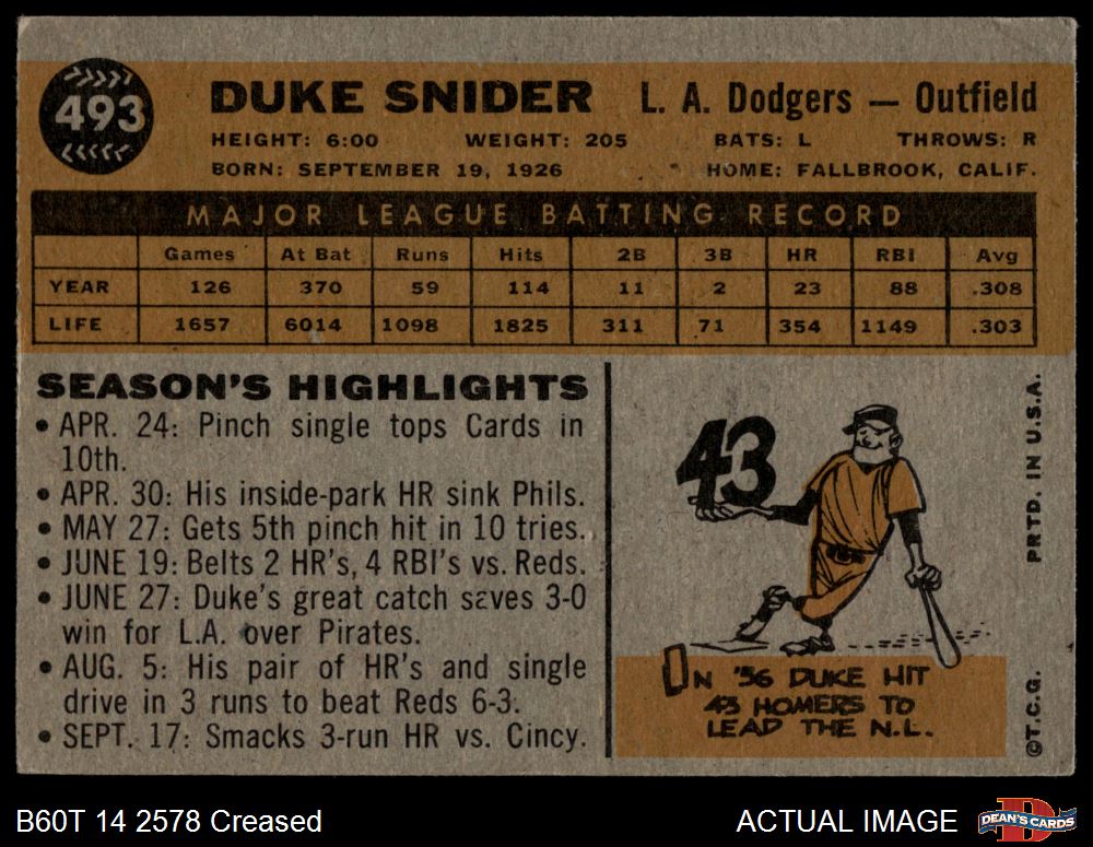 1960 Topps #493 Duke Snider 3 - VG