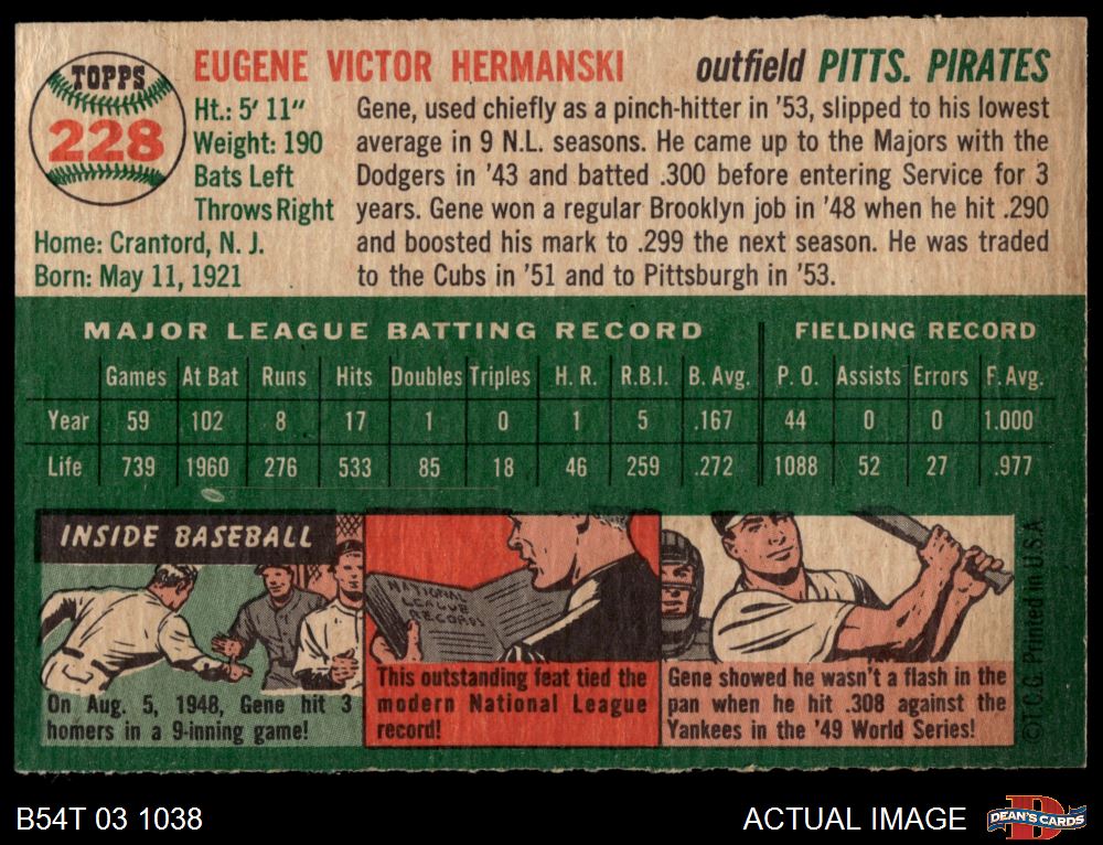 1954 Topps #228 Gene Hermanski 6 - EX/MT