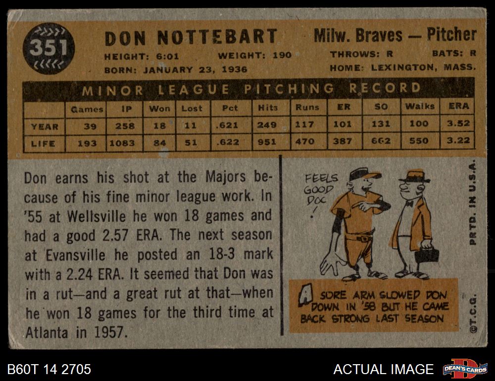 1960 Topps #351 Don Nottebart Front Thumbnail