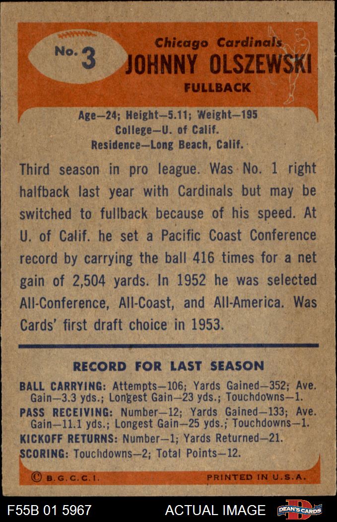 1955 Bowman Football Cards (844 available)1955 Bowman Cardinals-FB (98 available)
