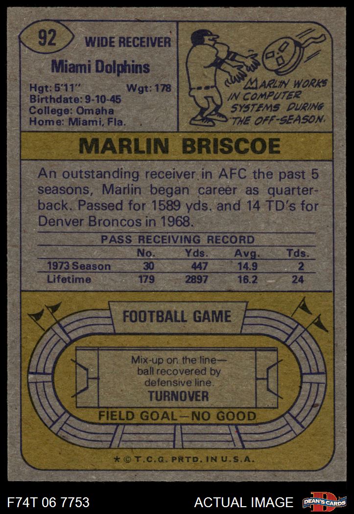 1974 Topps #92 Marlin Briscoe 8 - NM/MT