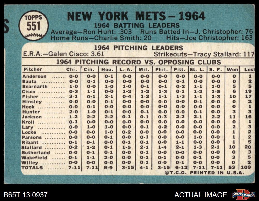 1965 Topps #551 Mets Team 2 - GOOD