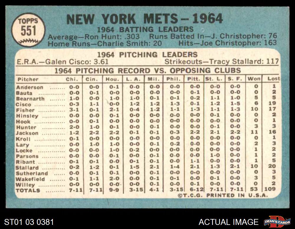 1965 Topps #551 Mets Team 6 - EX/MT