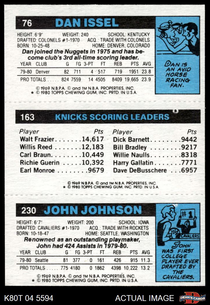 1980 Topps - John Johnson / Bill Cartwright / Dan Issel 230 / 163 / 76 4 - VG/EX