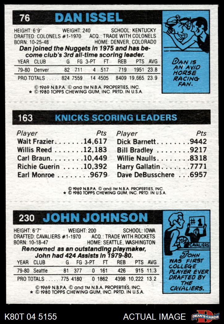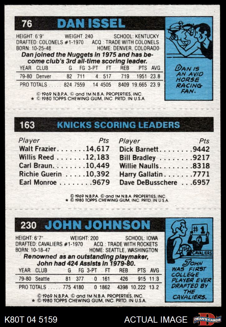 1980 Topps - John Johnson / Bill Cartwright / Dan Issel 230 / 163 / 76 7 - NM