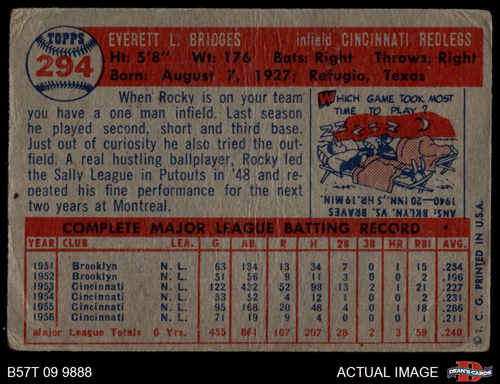 1957 Topps #294 Rocky Bridges 1 - POOR