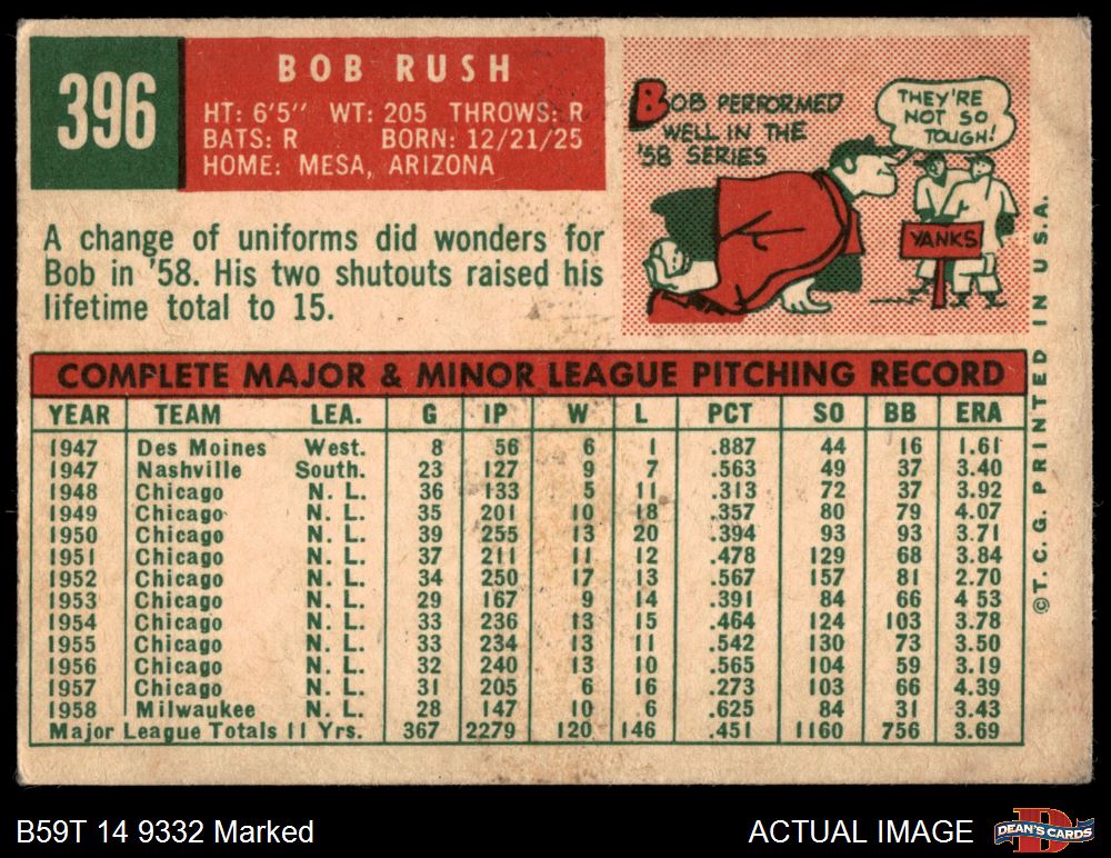 1959 Topps #396 Bob Rush 1.5 - FAIR