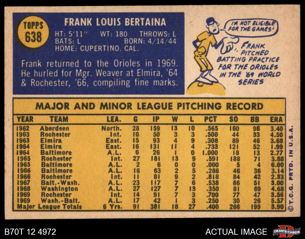 1970 Topps #638 Frank Bertaina 4 - VG/EX