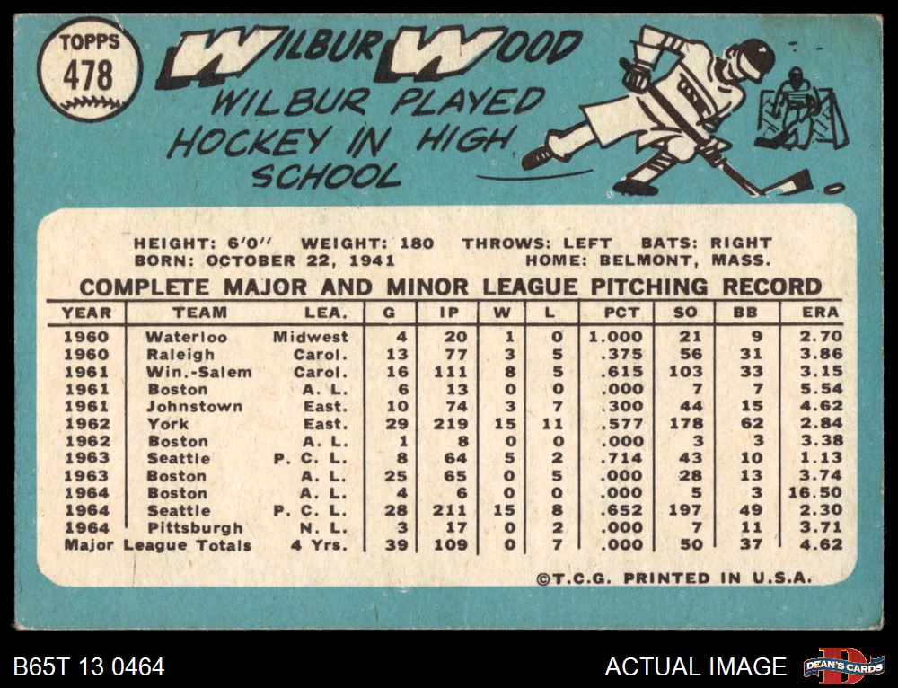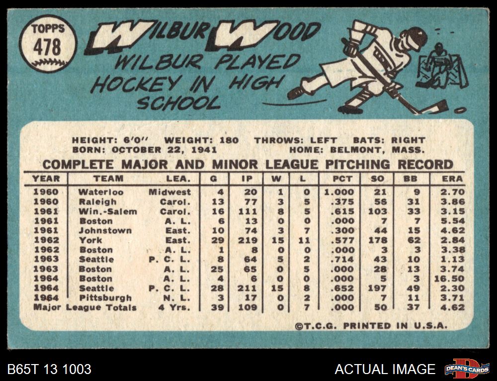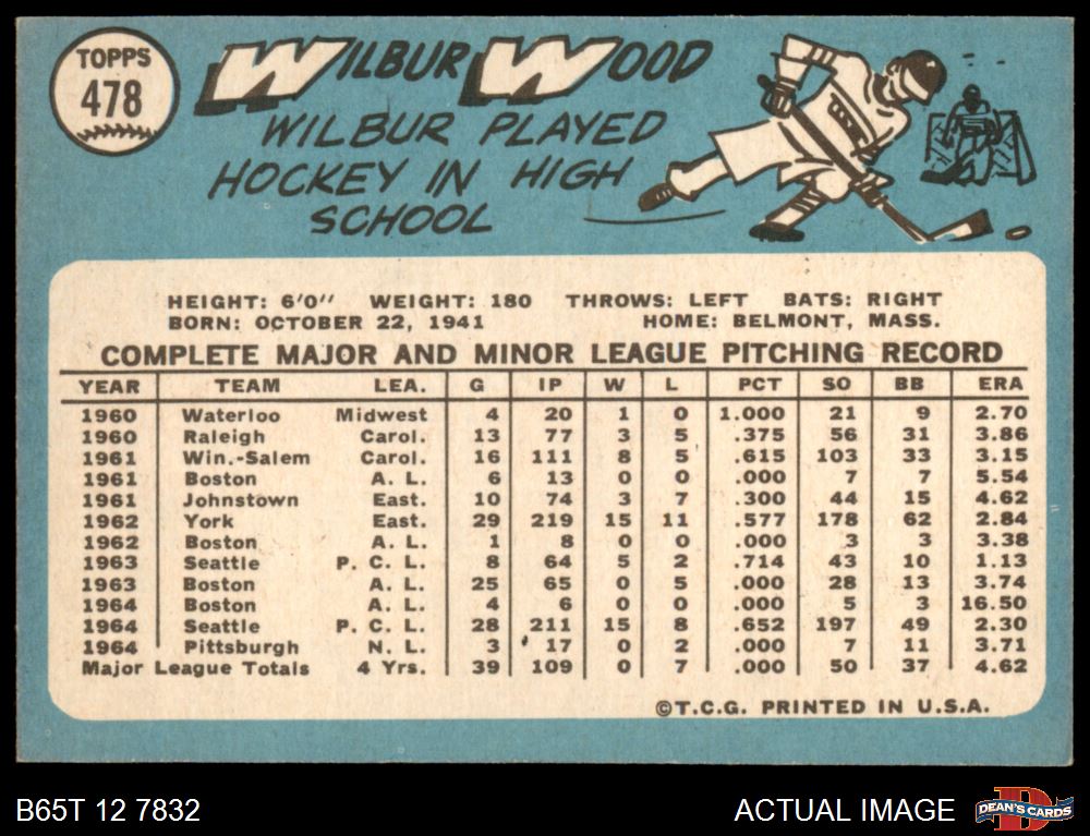 1965 Topps #478 Wilbur Wood 2 - GOOD