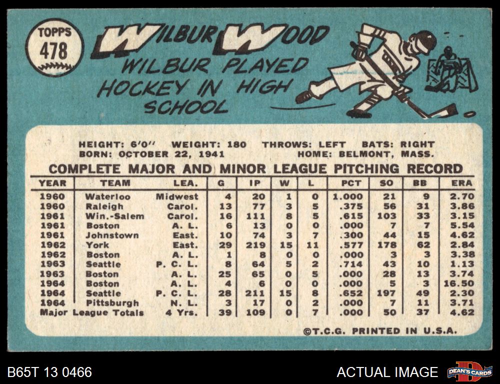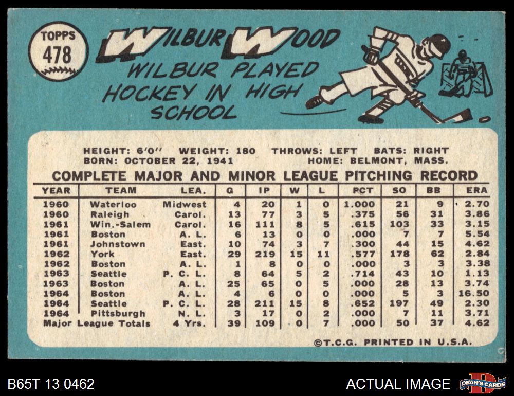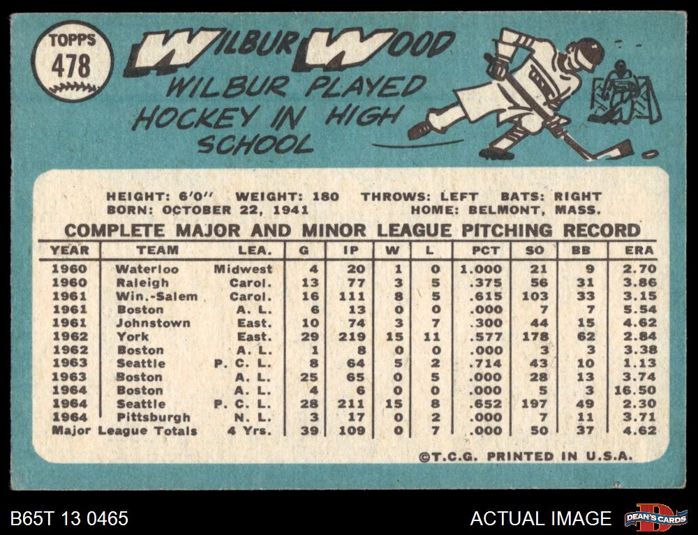 1965 Topps #478 Wilbur Wood 4 - VG/EX