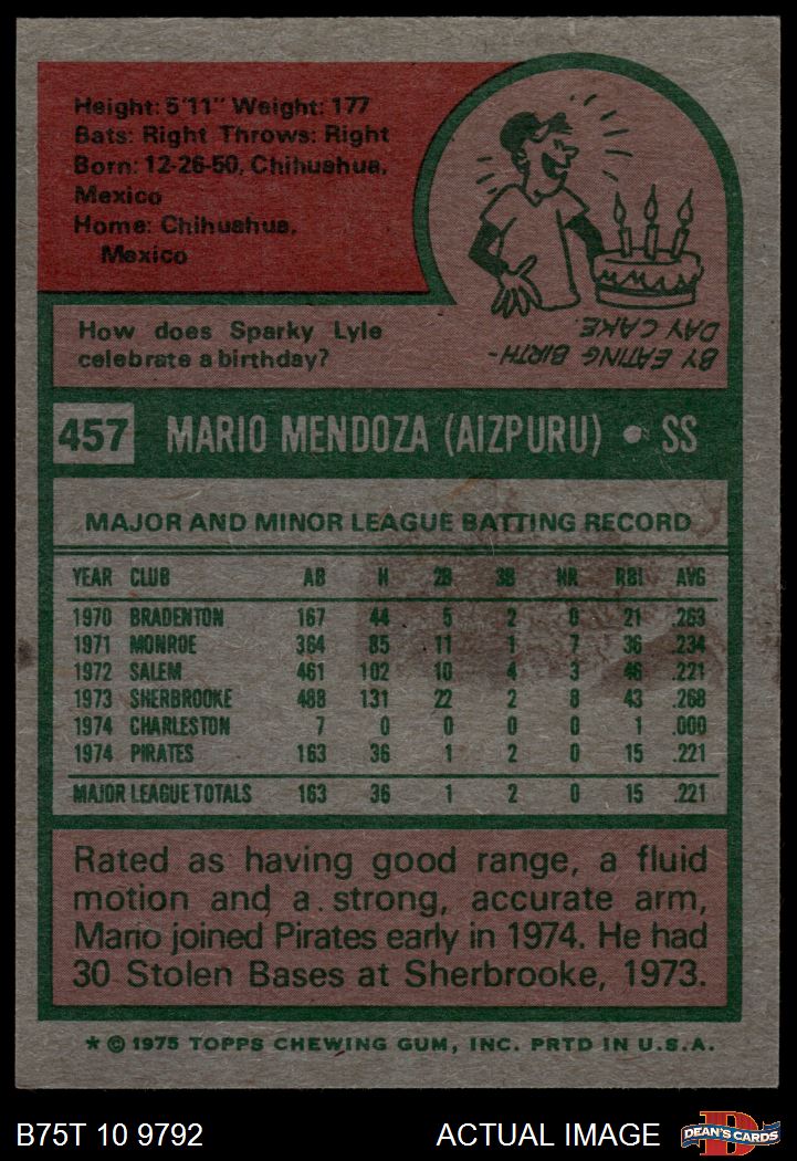 1975 Topps #457 Mario Mendoza 7 - NM