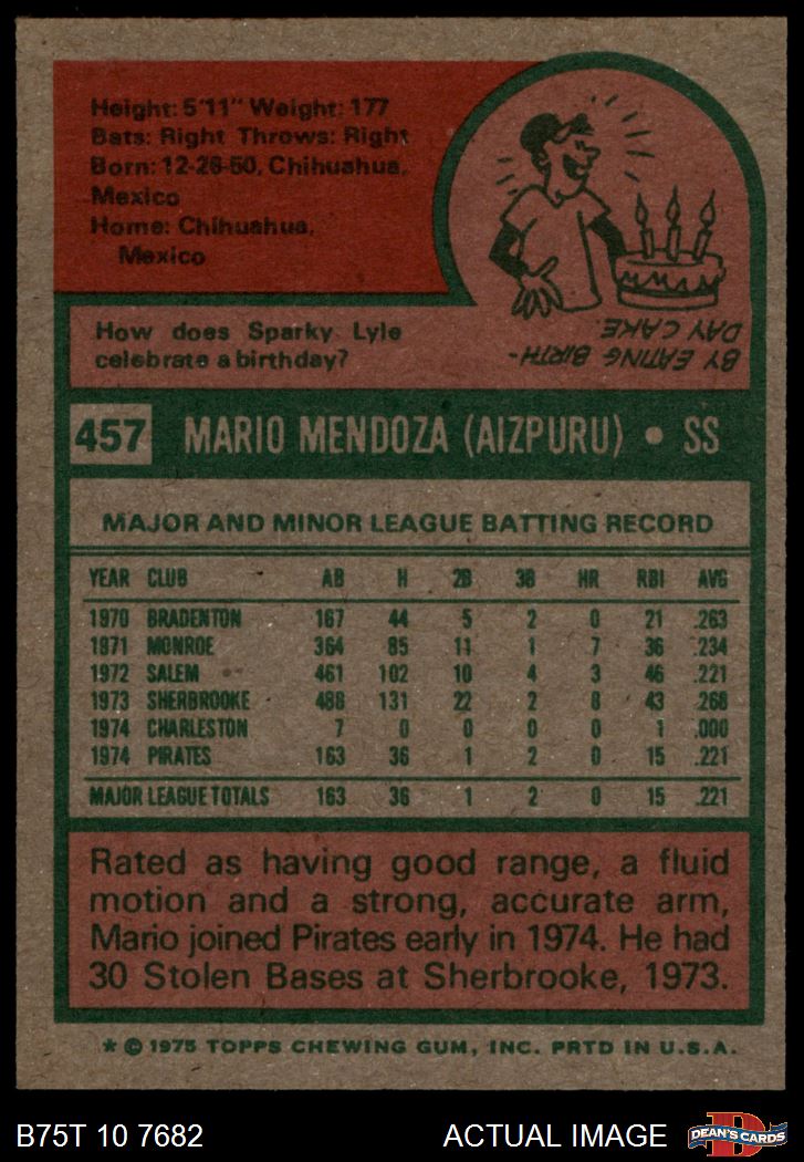 1975 Topps #457 Mario Mendoza 7.5 - NM+