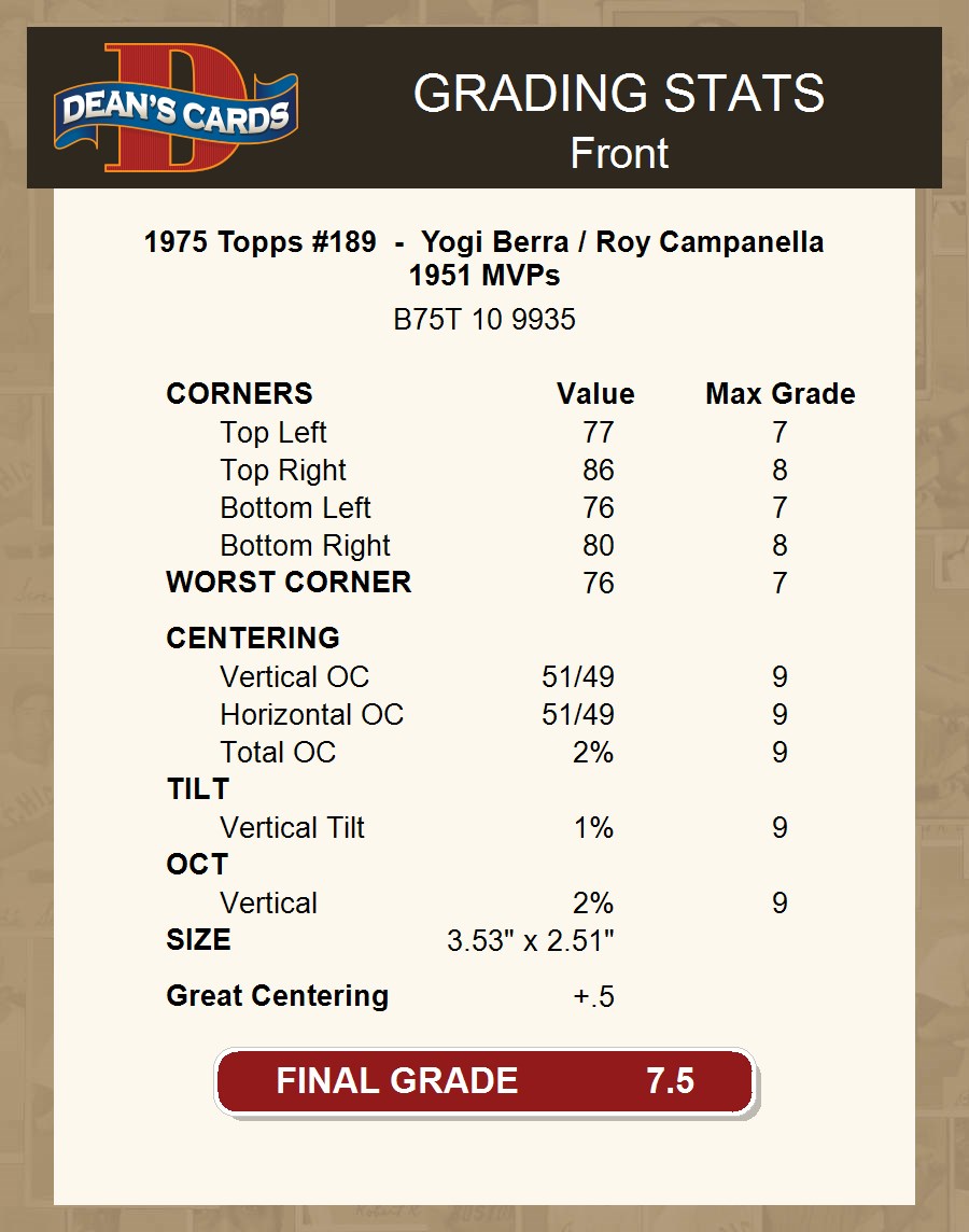 1975 Topps #189 - Yogi Berra / Roy Campanella 1951 MVPs 7.5 - NM+