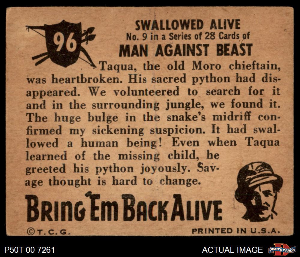 1950 Topps Bring Em Back Alive #96 Swallowed Alive