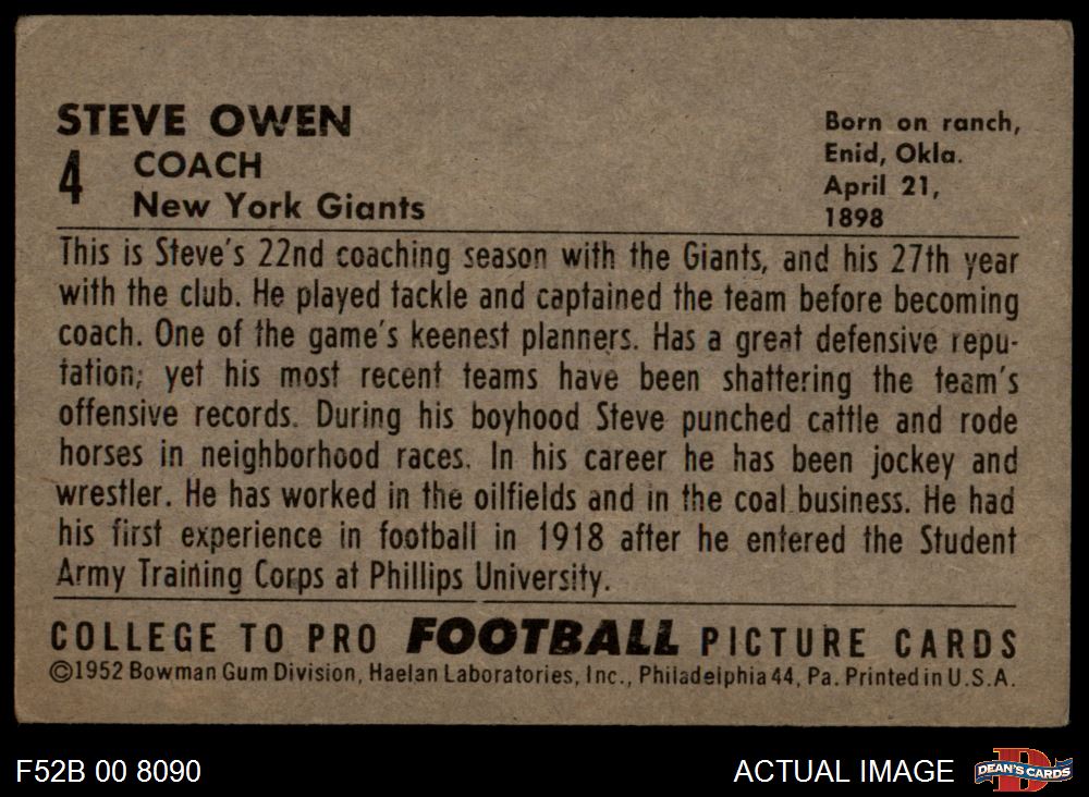 1952 Bowman Large #4 Steve Owen 3 - VG