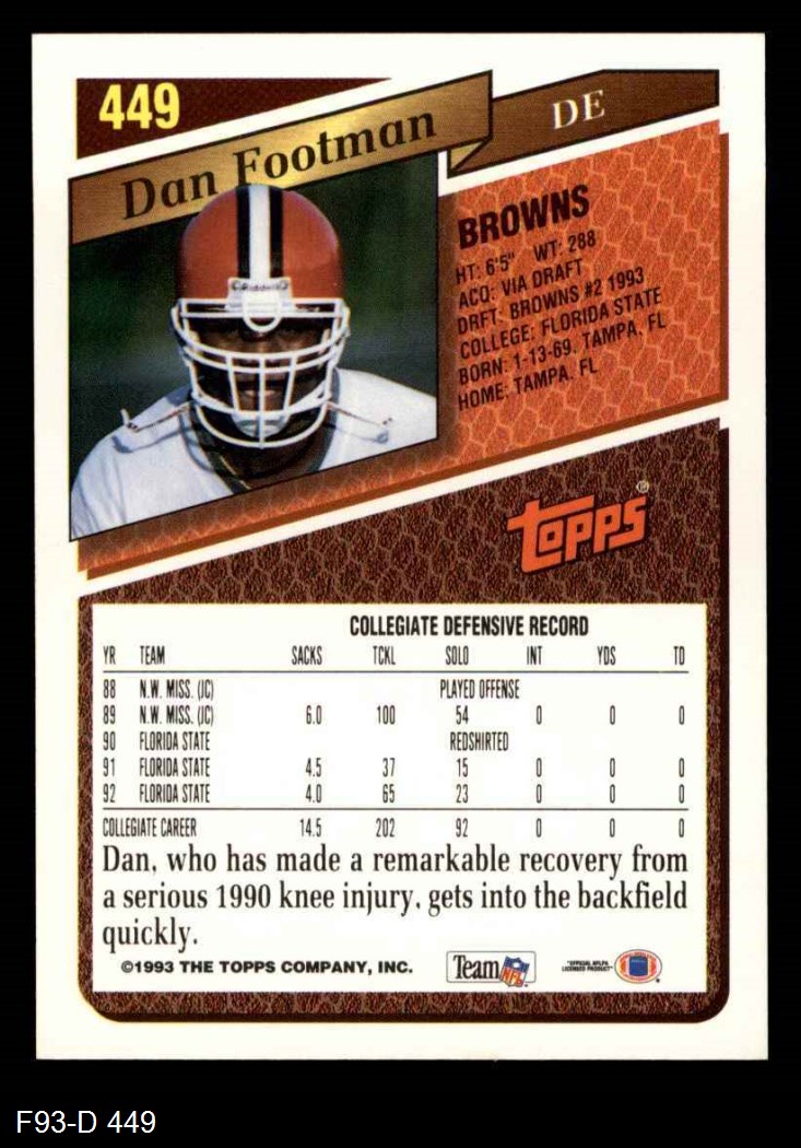 1993 Topps #449 Dan Footman 8 - NM/MT