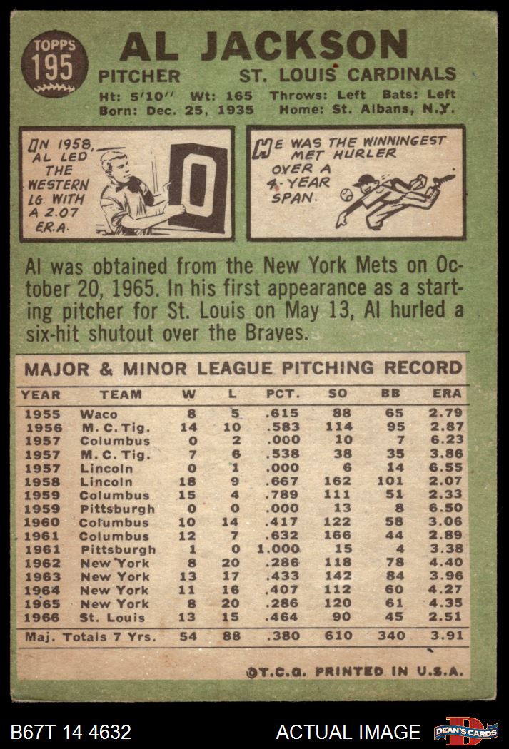 1967 Topps #195 Al Jackson 4 - VG/EX