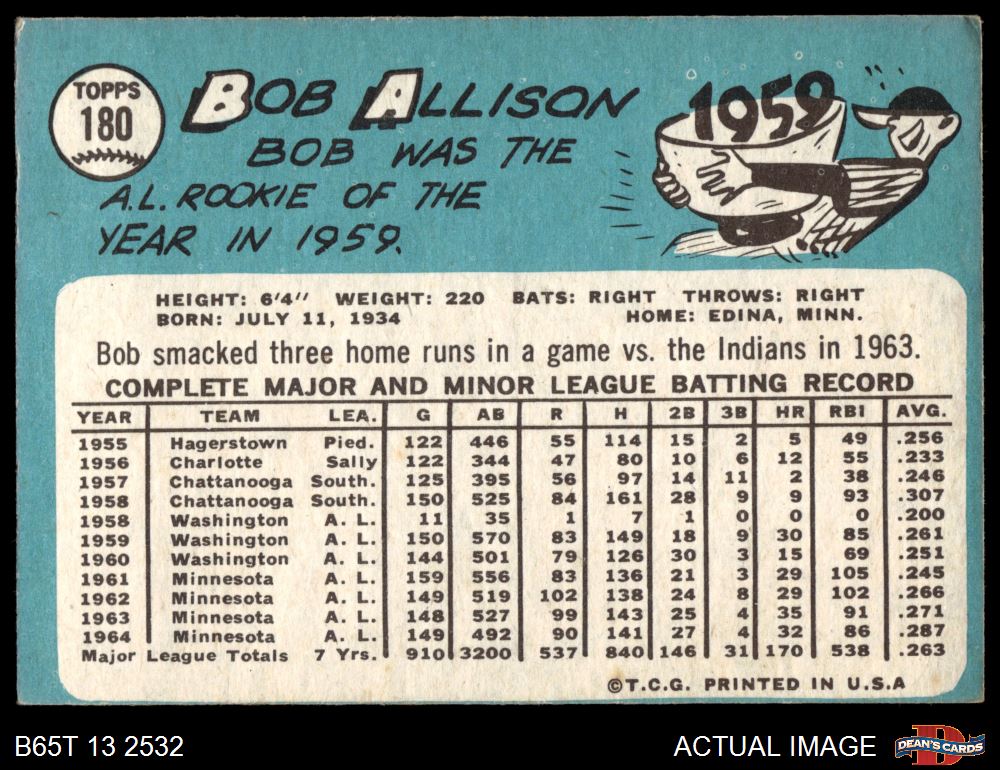 1965 Topps #180 Bob Allison 3 - VG
