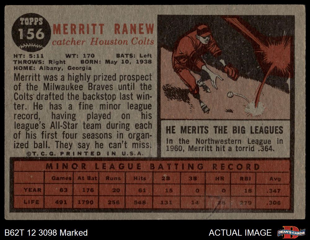 1962 Topps #156 NRM Merritt Ranew 1.5 - FAIR
