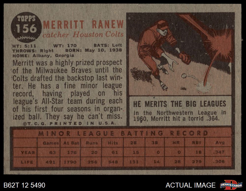 1962 Topps #156 NRM Merritt Ranew Front Thumbnail
