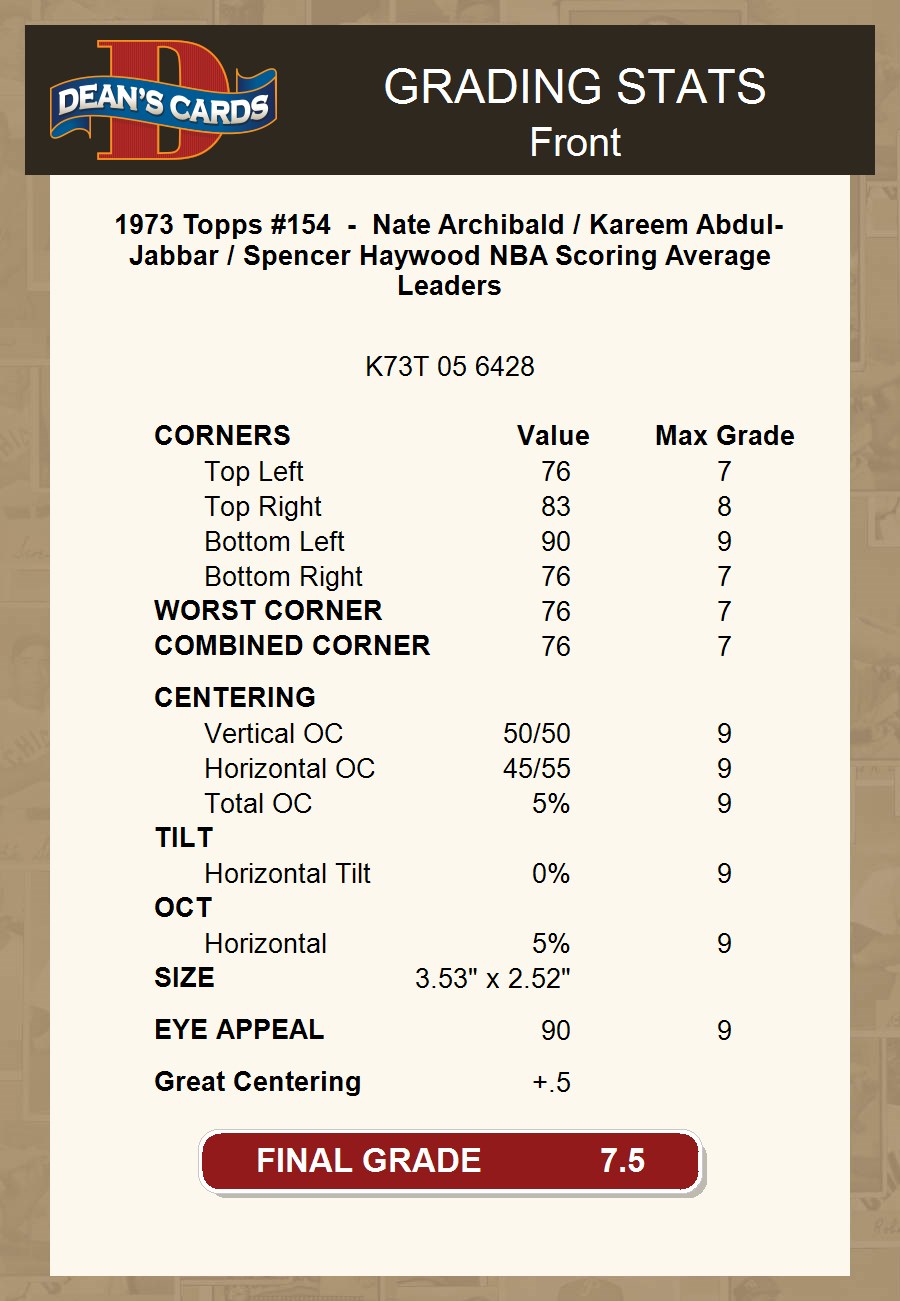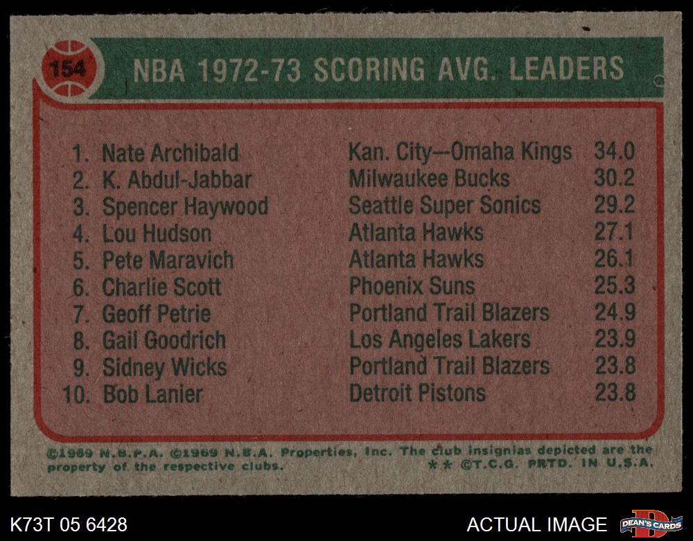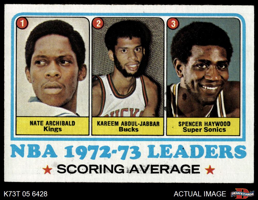 1973 Topps #154 - Nate Archibald / Kareem Abdul-Jabbar / Spencer Haywood NBA Scoring Average Leaders 7.5 - NM+