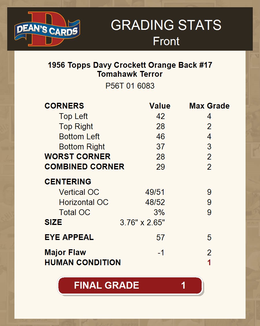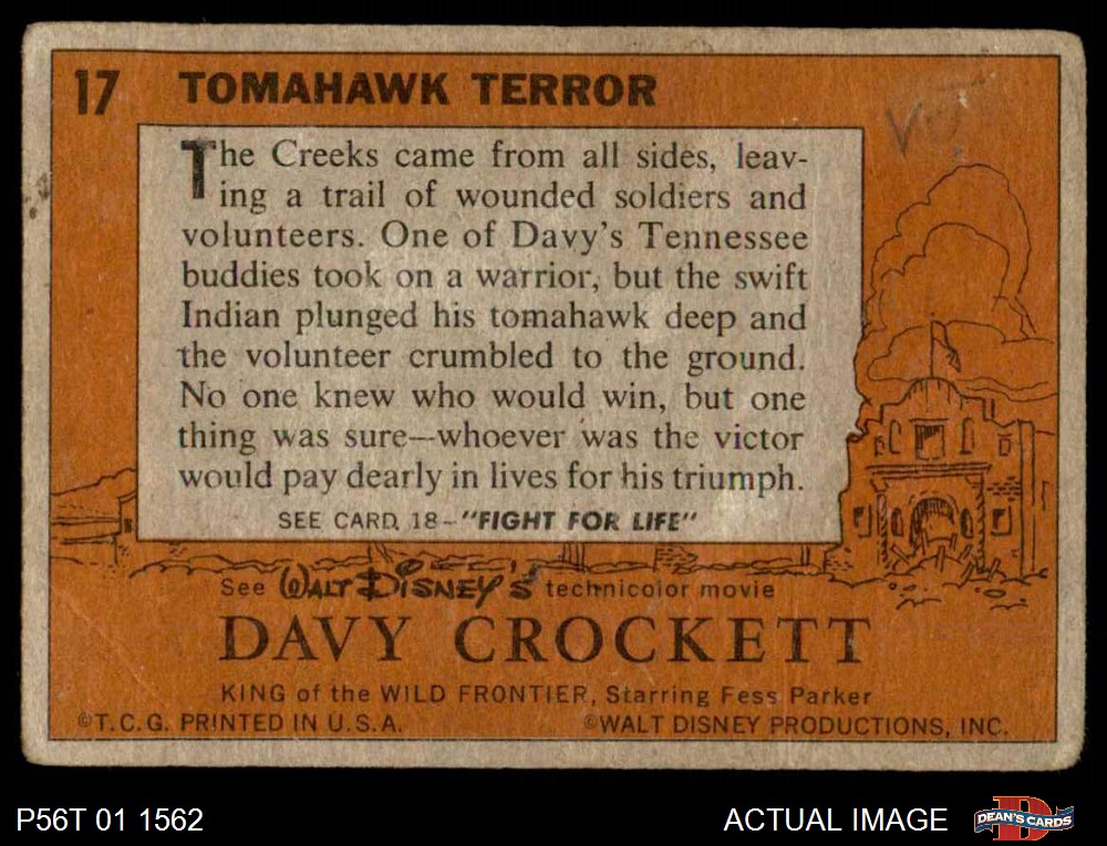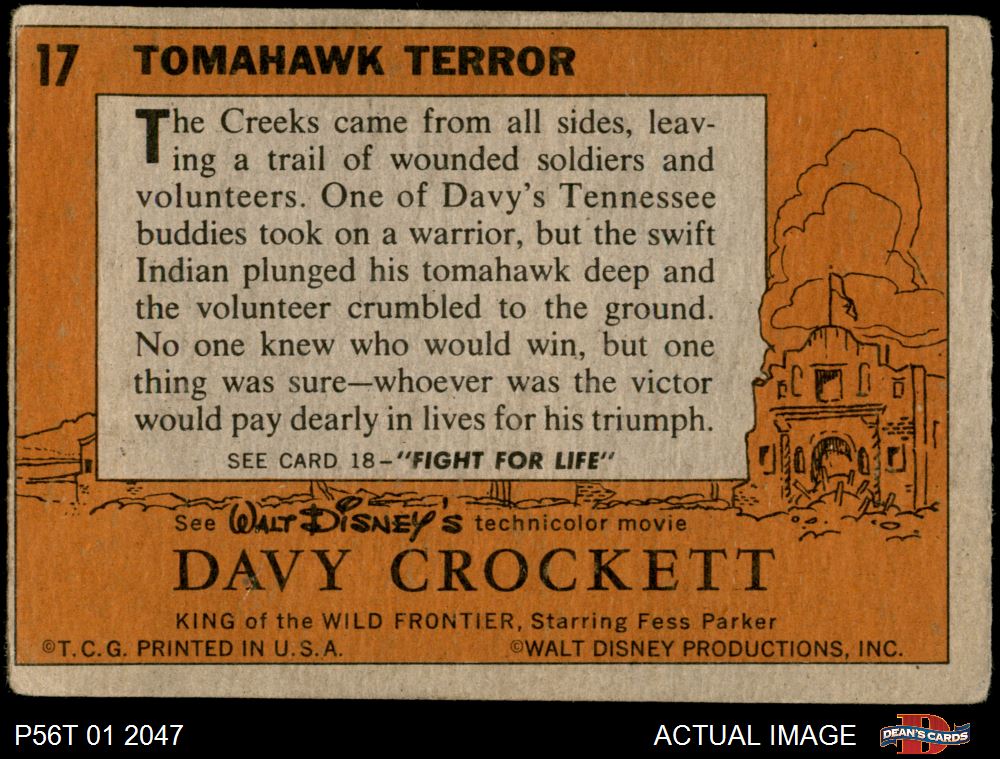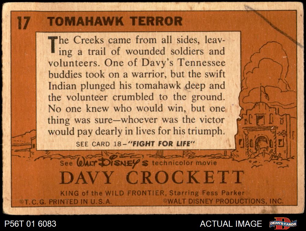 1956 Topps Davy Crockett Orange Back #17 Tomahawk Terror 1 - POOR