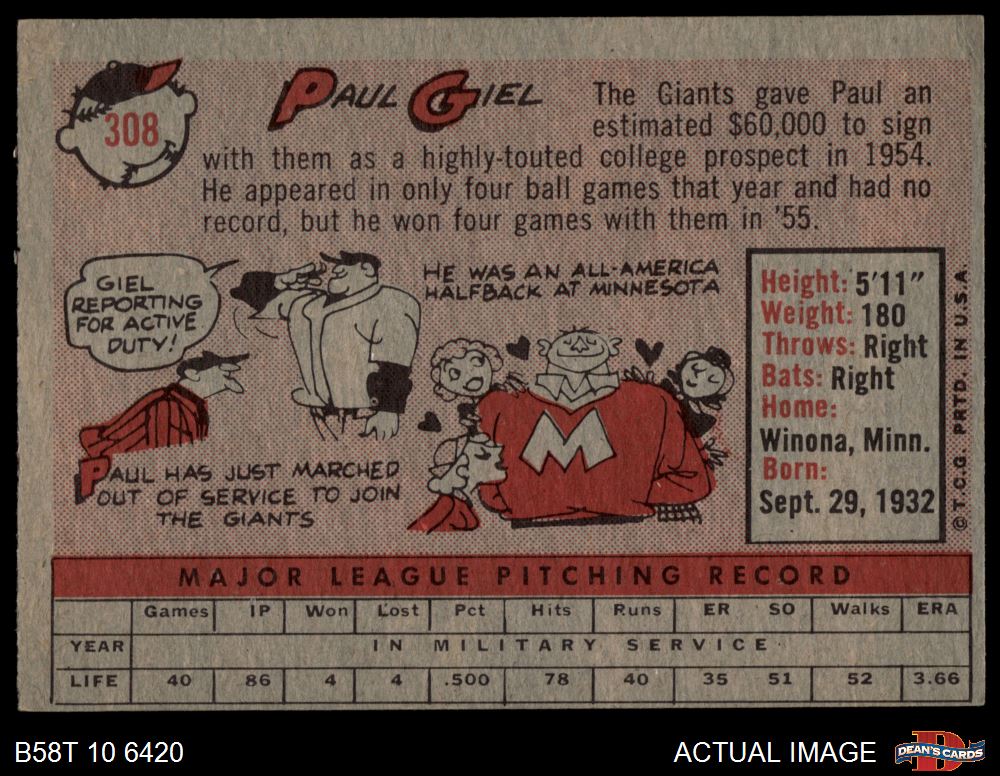 1958 Topps #308 Paul Giel