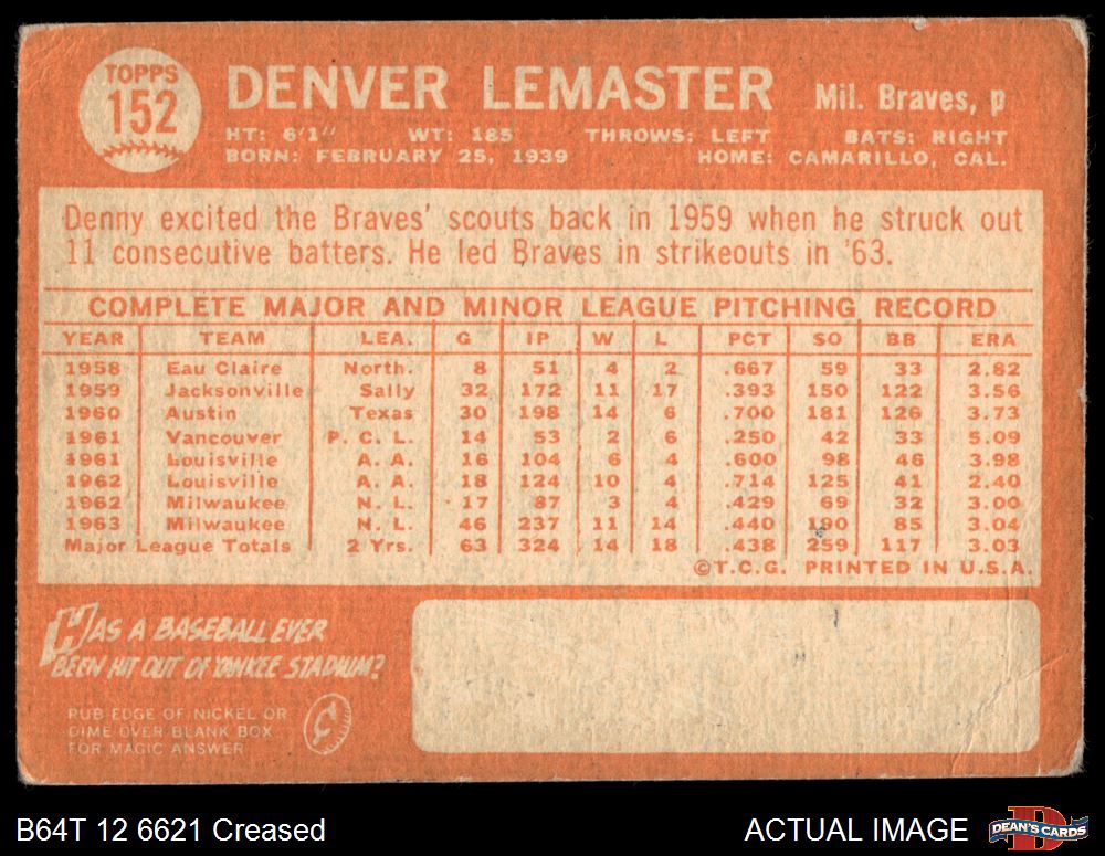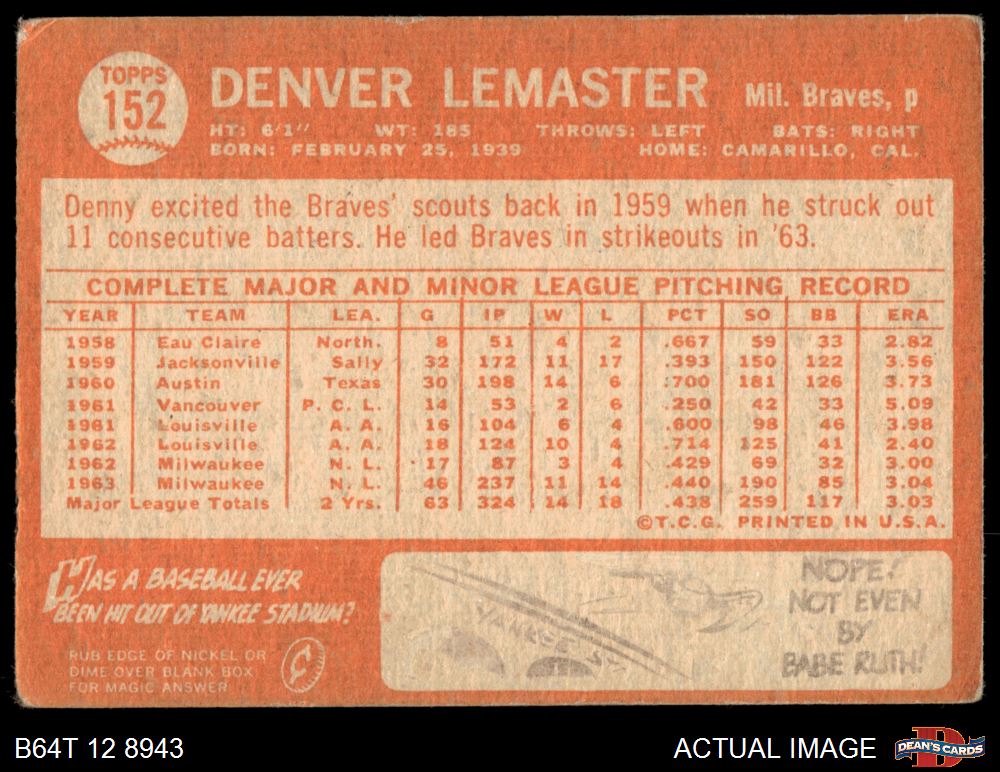 1964 Topps #152 Denver Lemaster 1.5 - FAIR