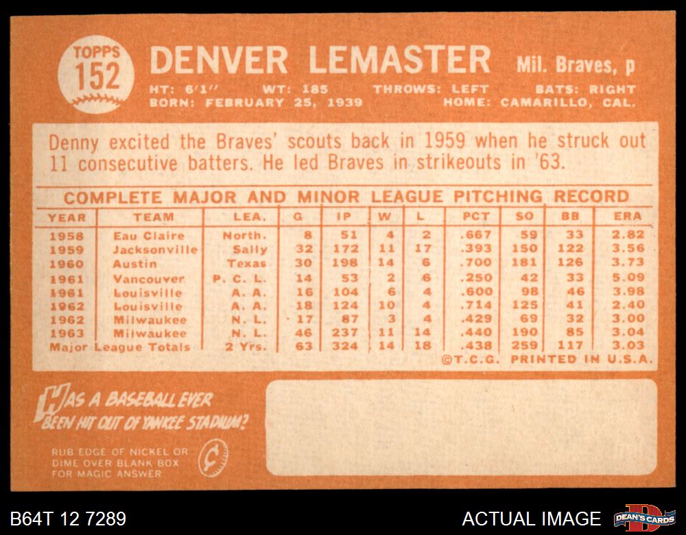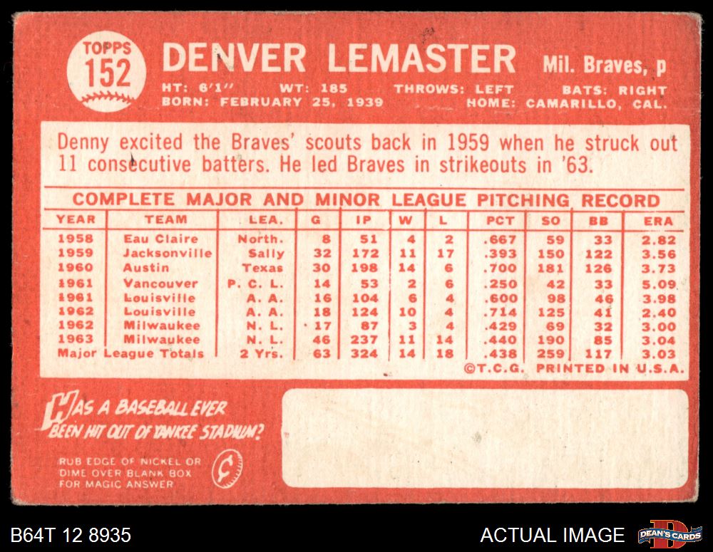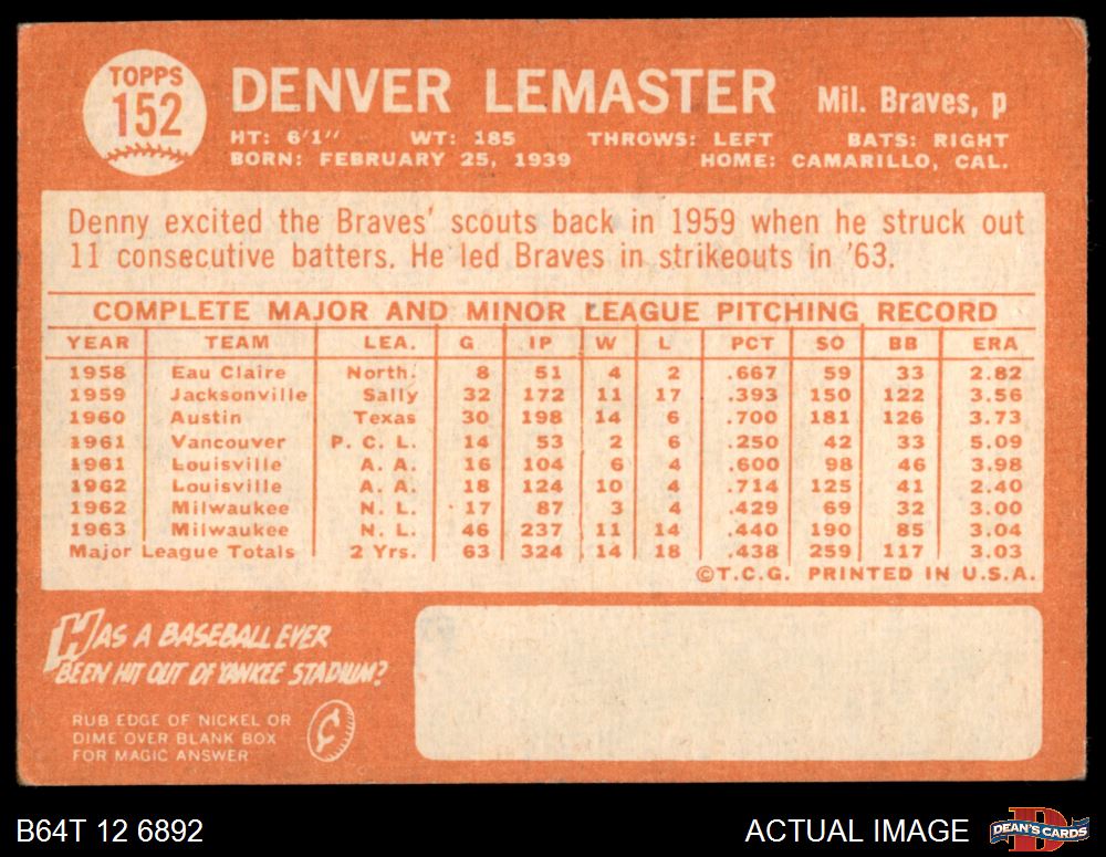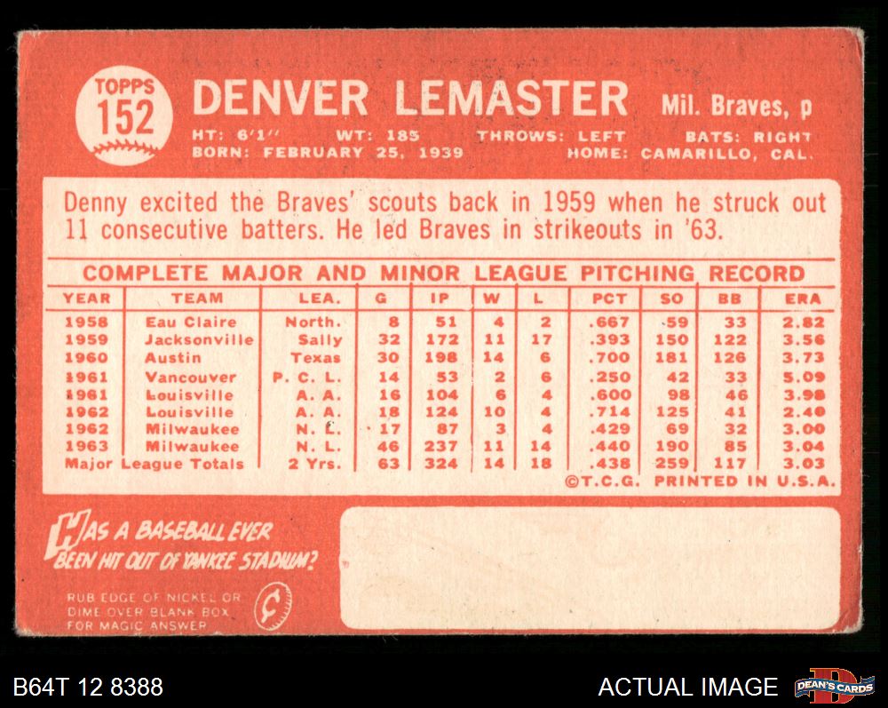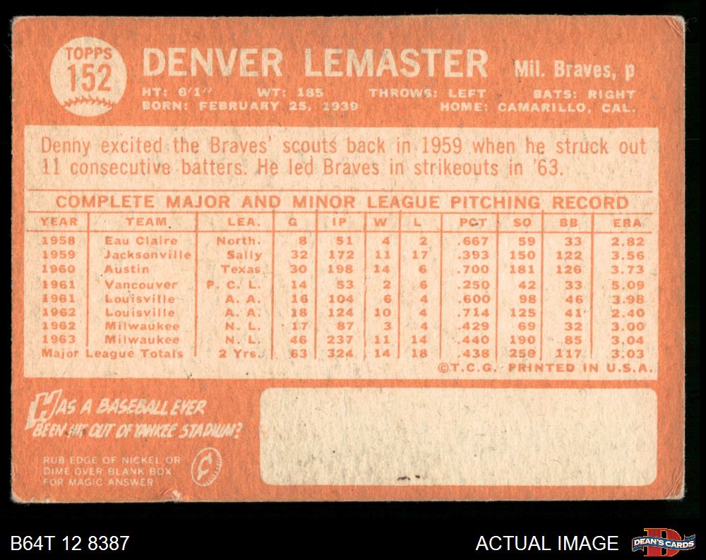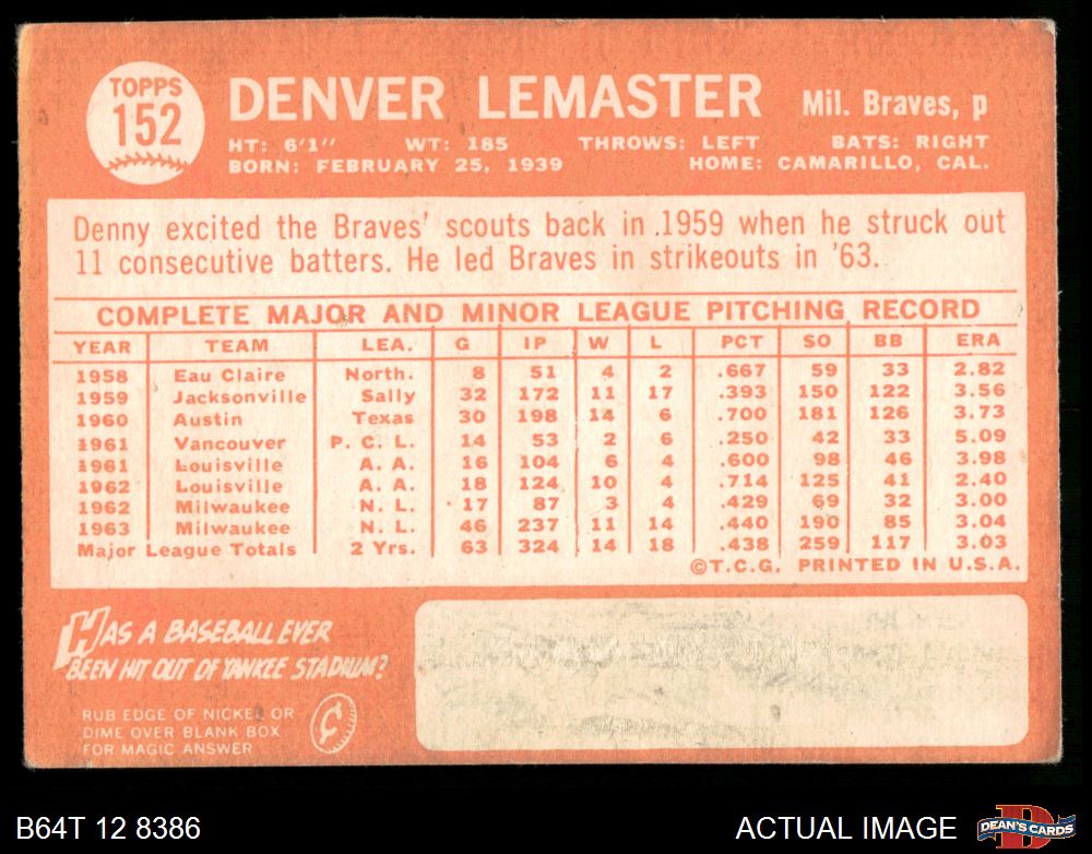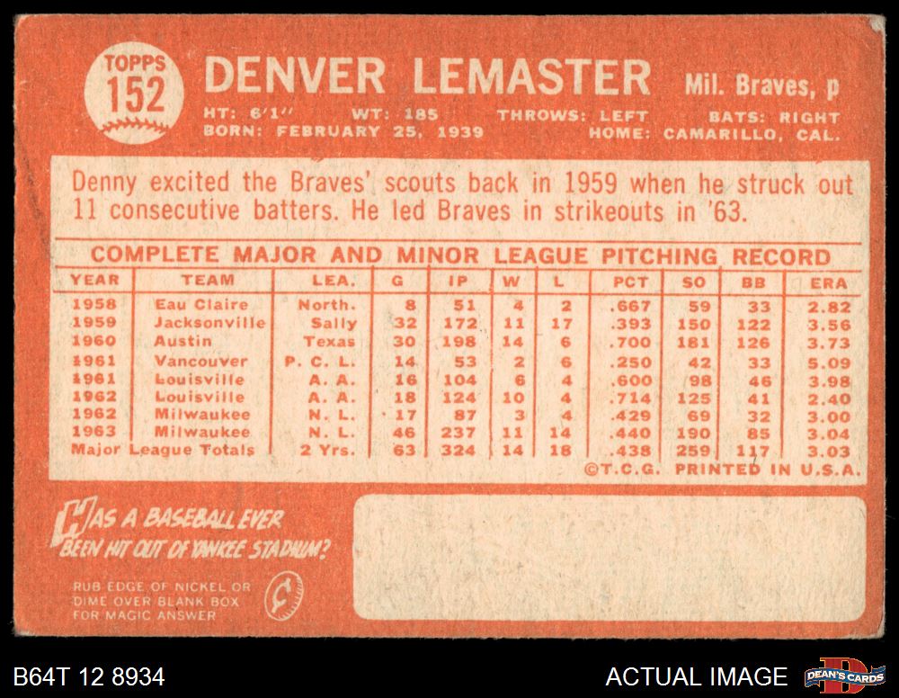 1964 Topps #152 Denver Lemaster