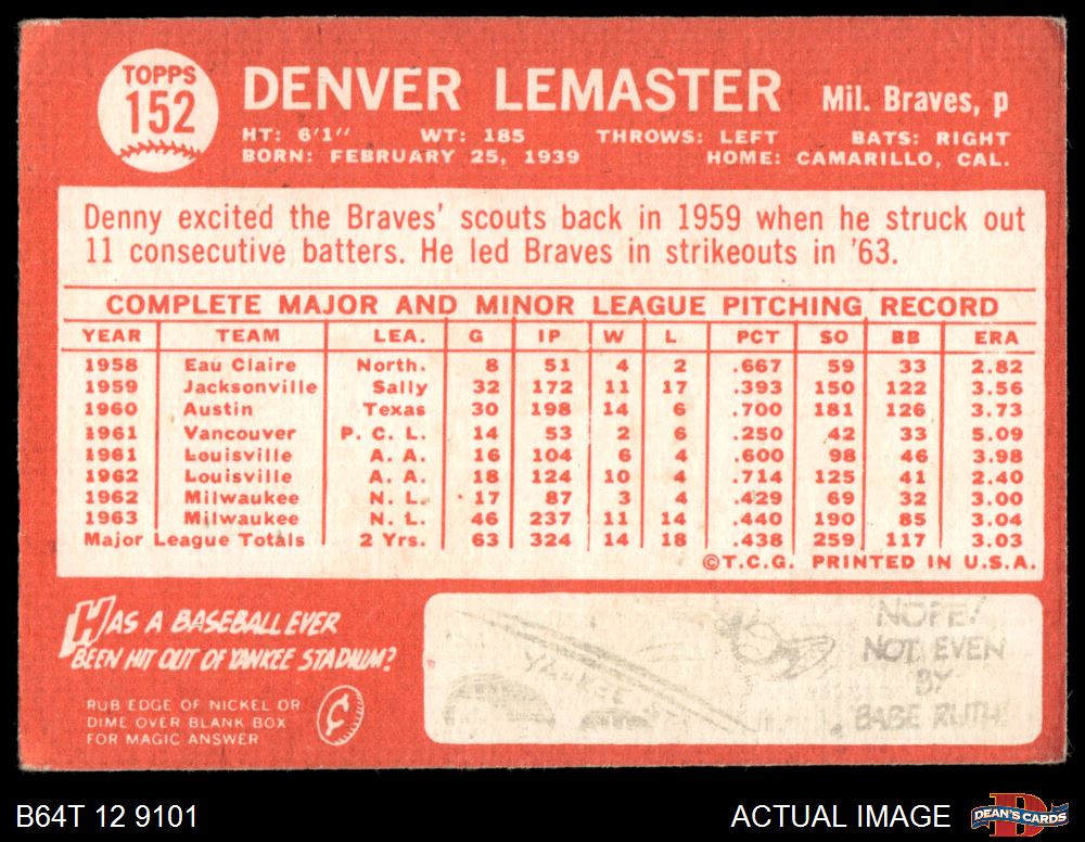 1964 Topps #152 Denver Lemaster 2 - GOOD