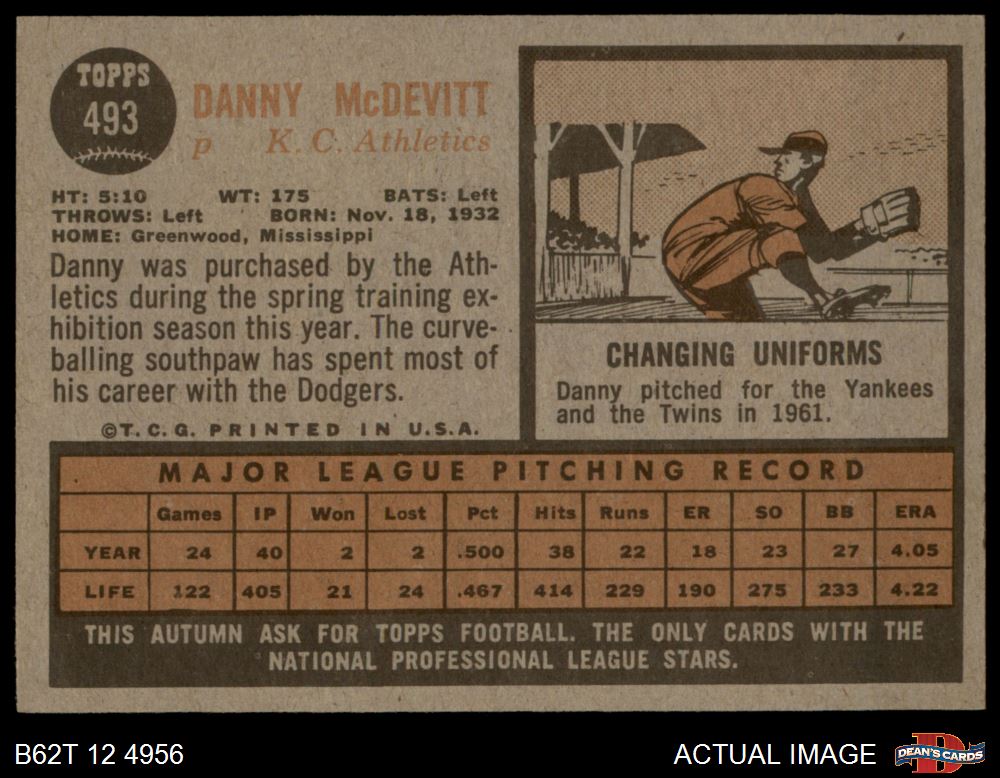 1962 Topps #493 Danny McDevitt 4 - VG/EX