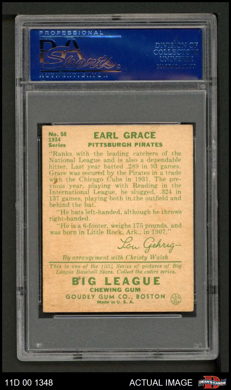 1934 Goudey #58 Earl Grace PSA 3 - VG