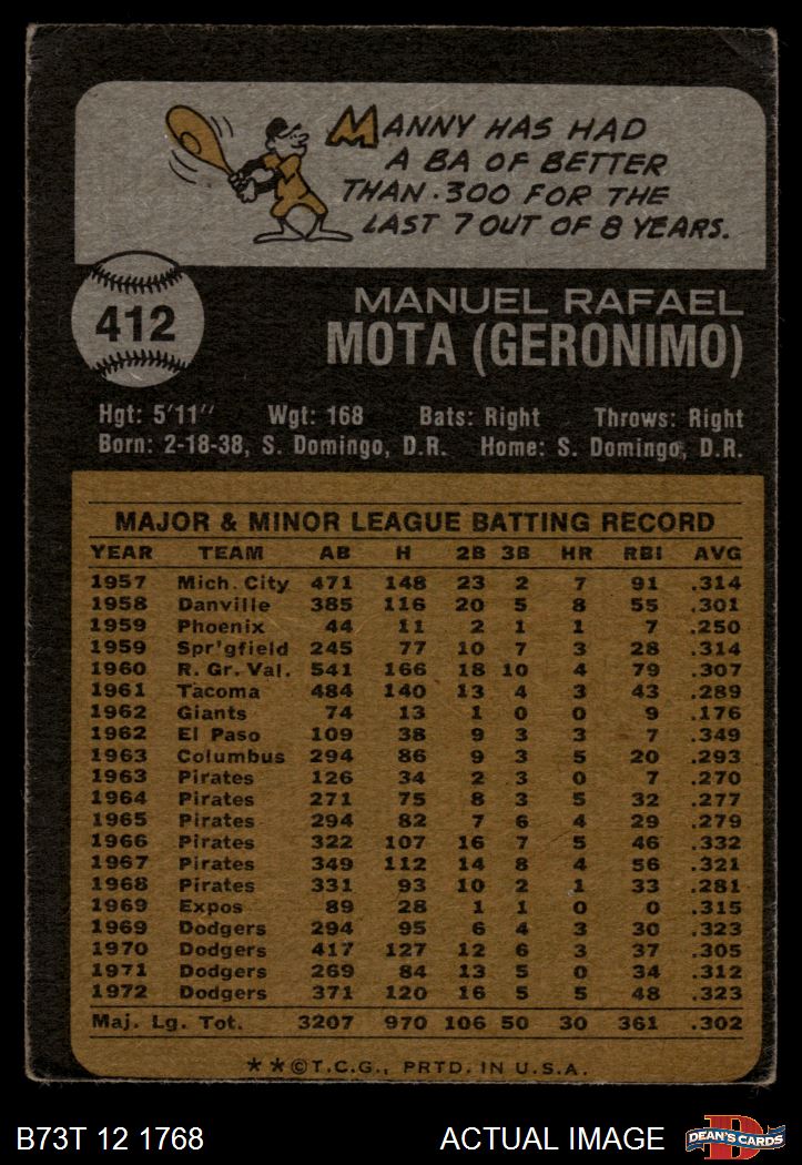 1973 Topps #412 Manny Mota 2 - GOOD