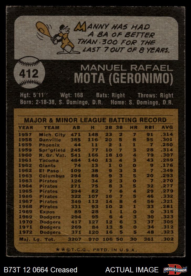 1973 Topps #412 Manny Mota 2.5 - GD+