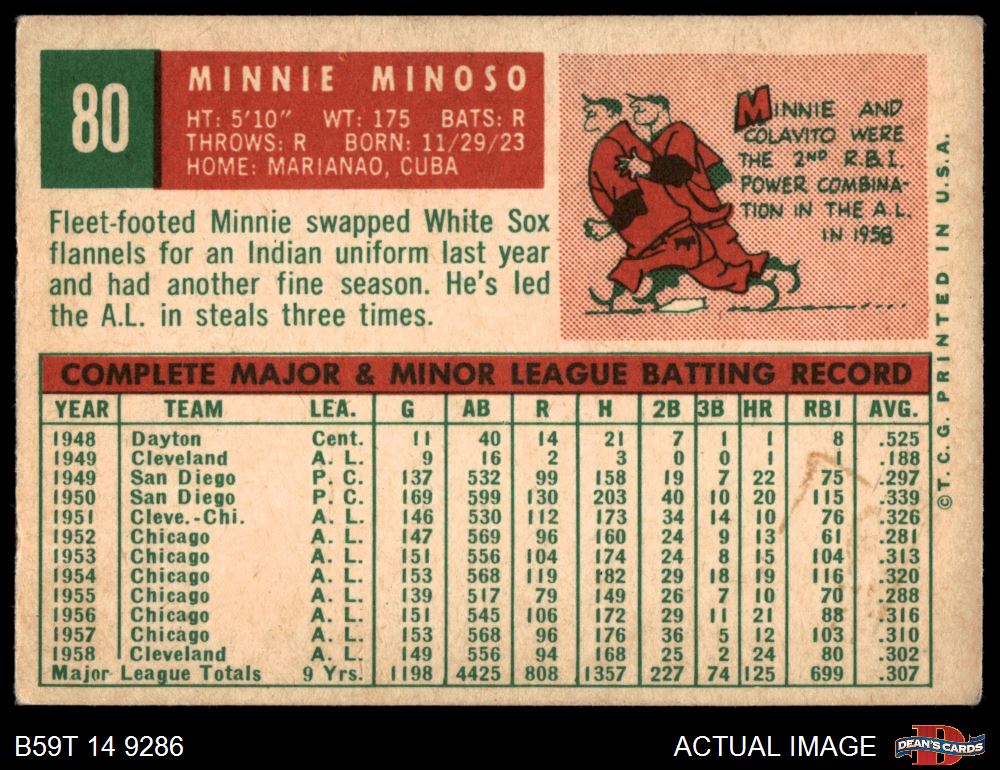1959 Topps #80 Minnie Minoso 2 - GOOD