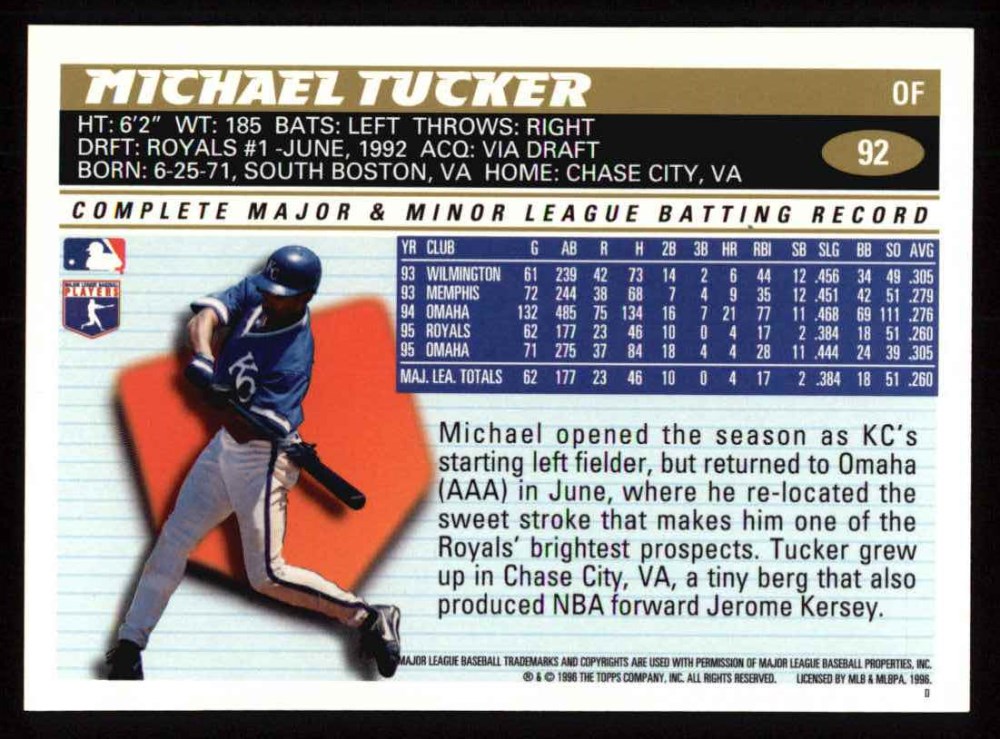 1996 Topps #92 Michael Tucker 8 - NM/MT
