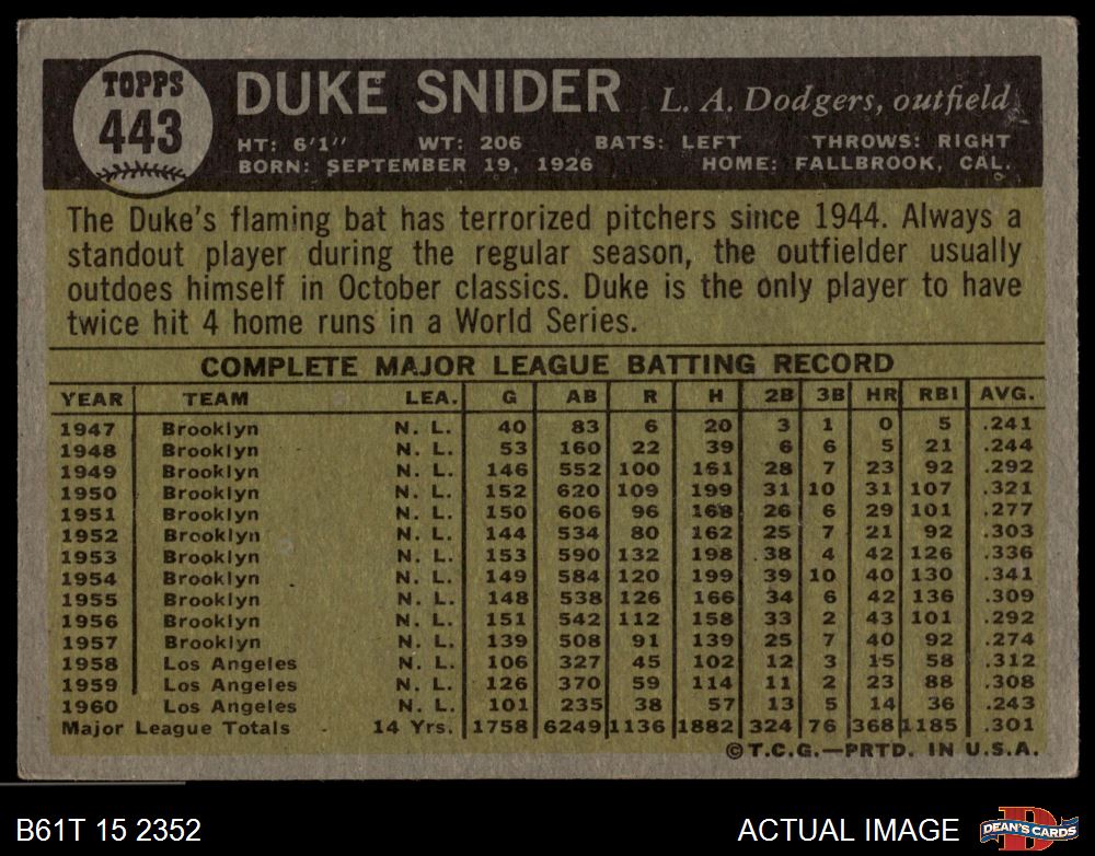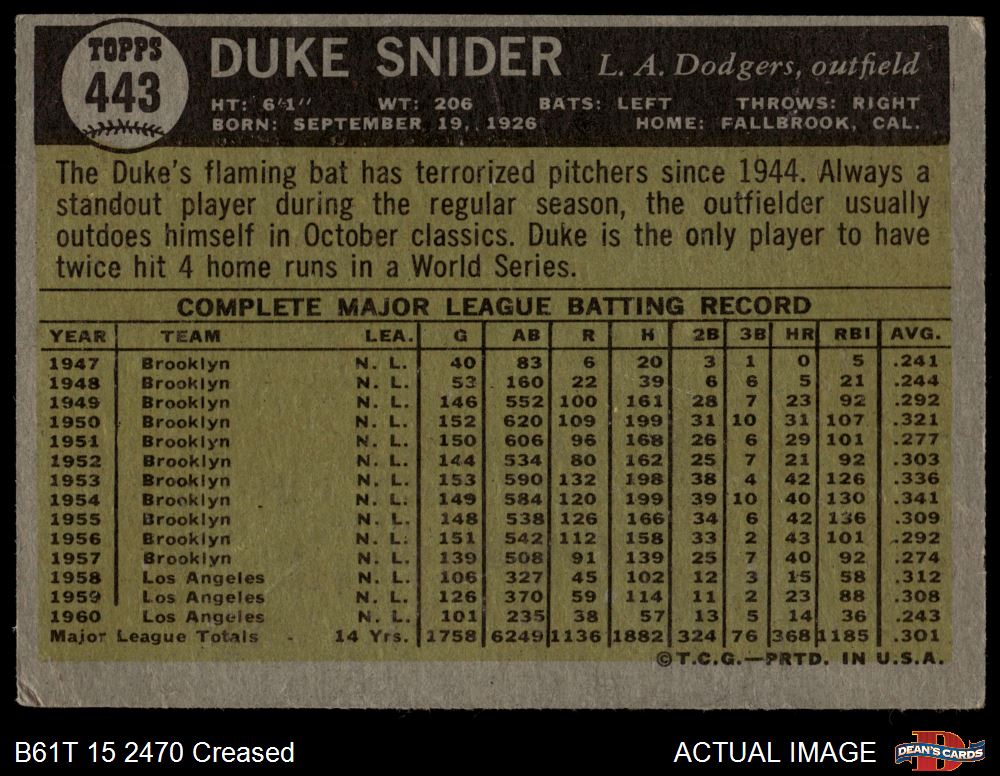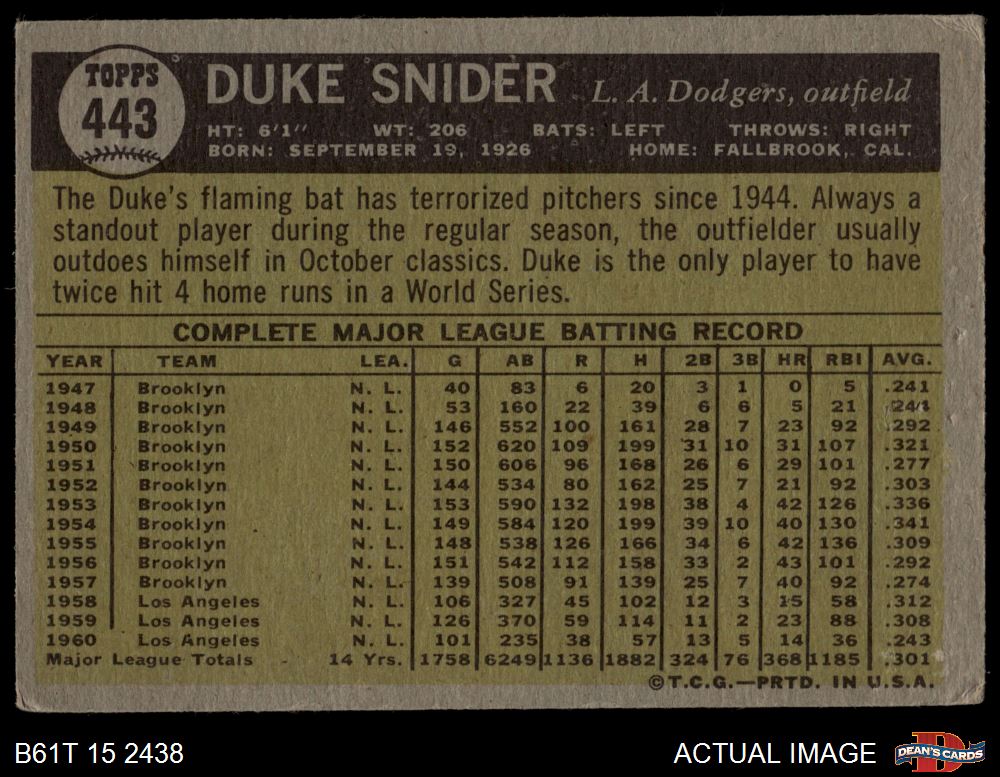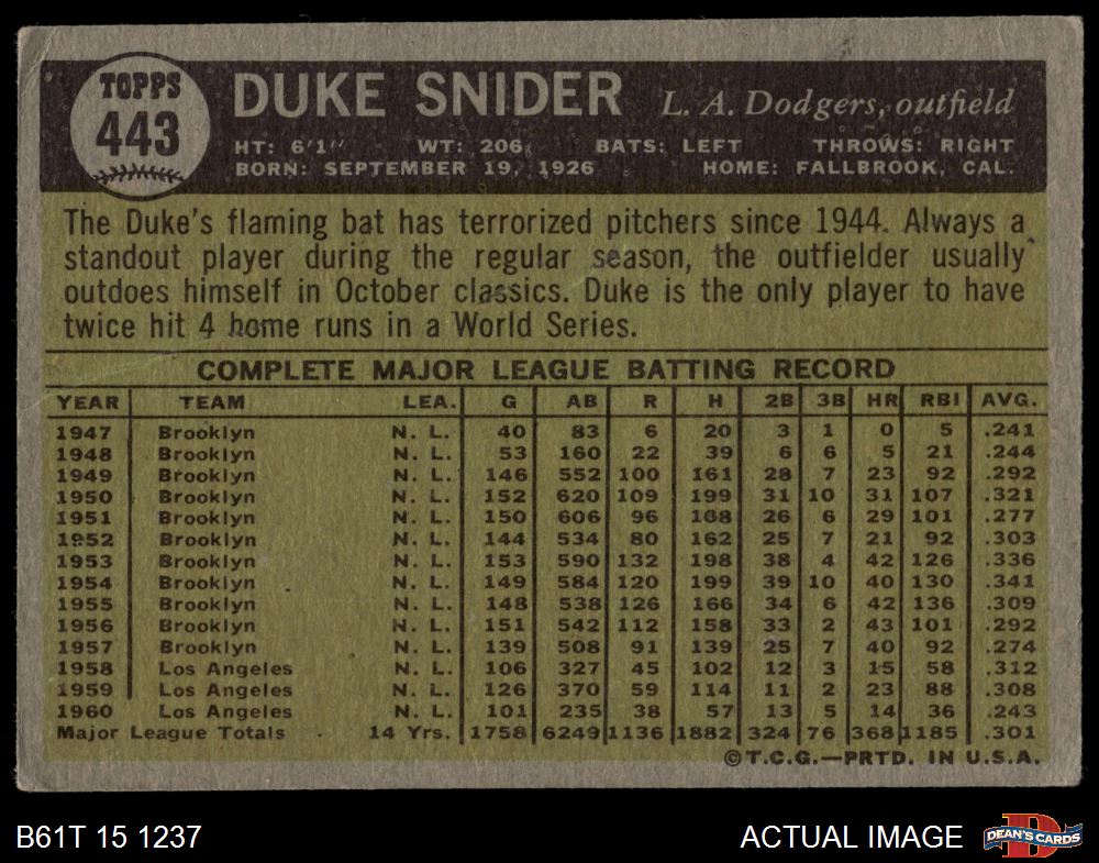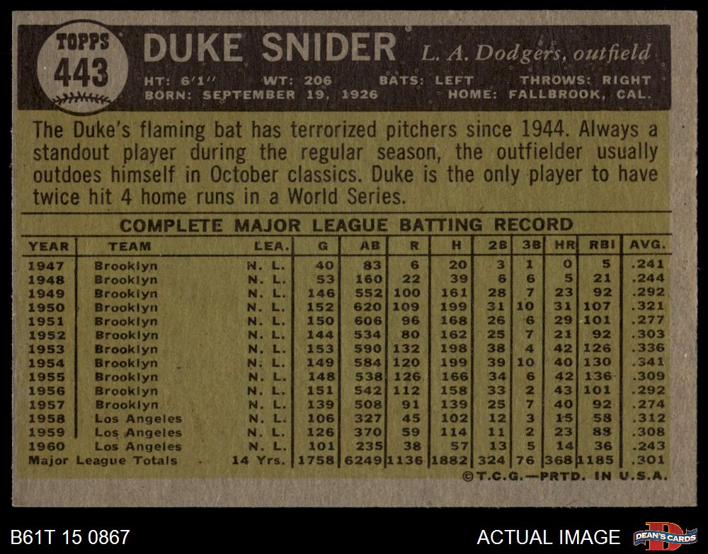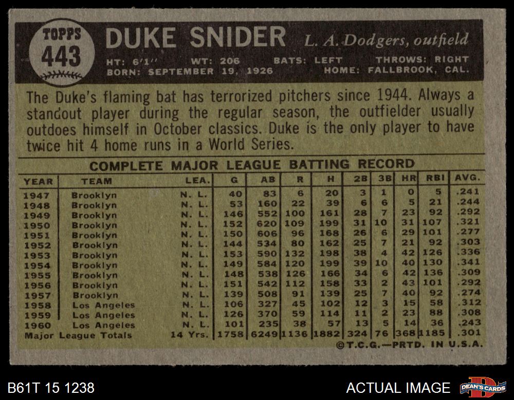 1961 Topps #443 Duke Snider