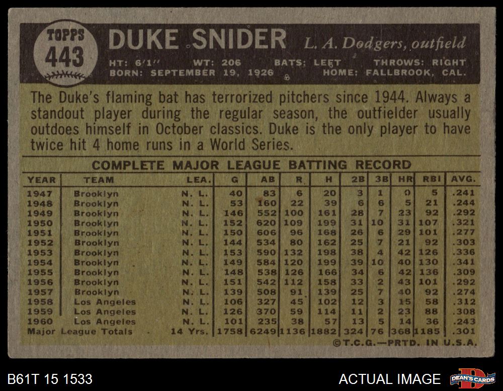 1961 Topps #443 Duke Snider 3.5 - VG+