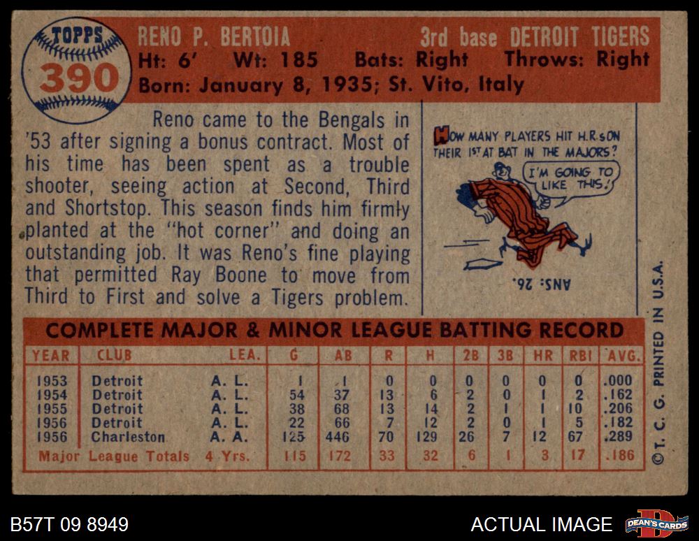 1957 Topps #390 Reno Bertoia 4 - VG/EX