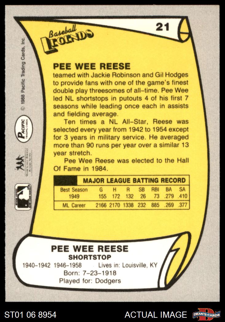 1988 Pacific Legends #21 Pee Wee Reese 8 - NM/MT