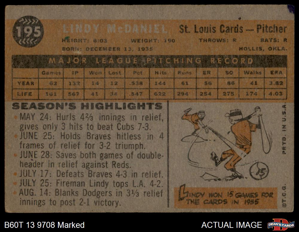 1960 Topps #195 Lindy McDaniel 1 - POOR