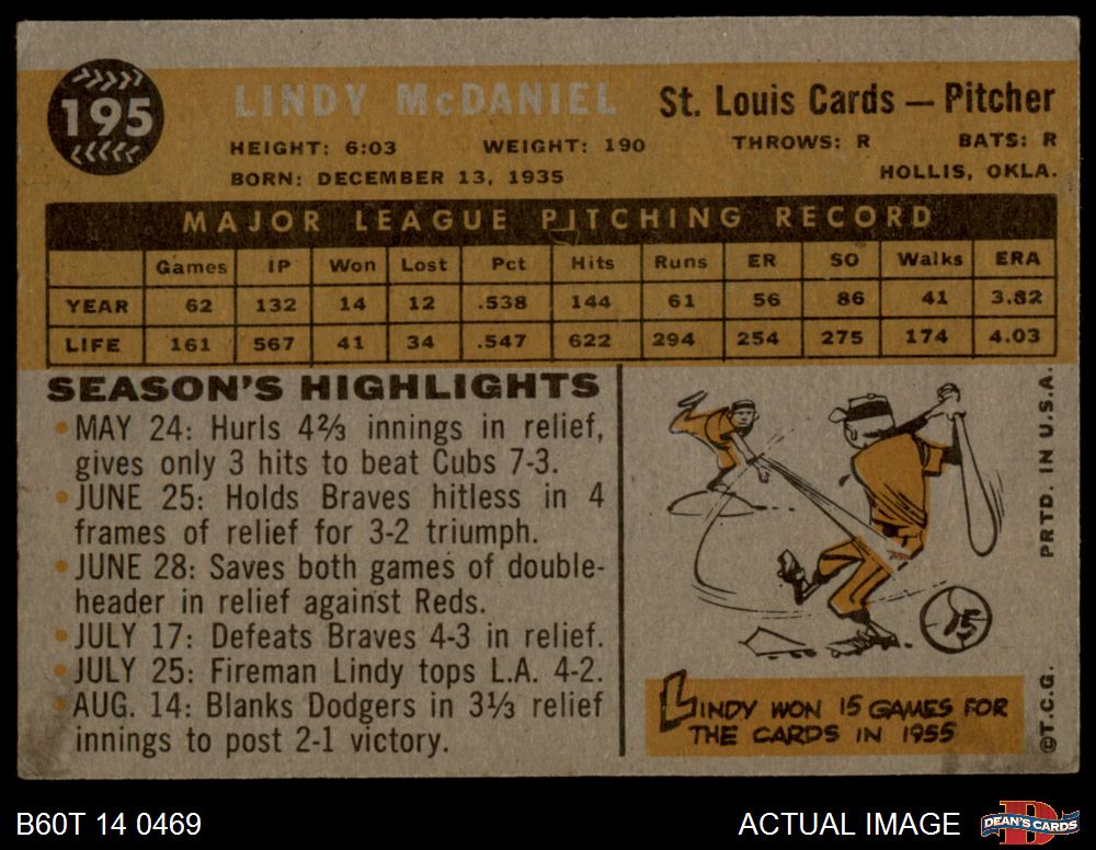 1960 Topps #195 Lindy McDaniel 1.5 - FAIR