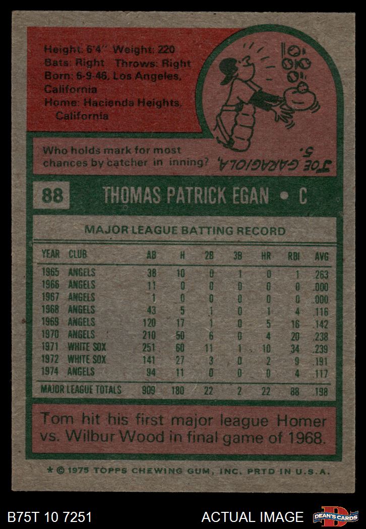1975 Topps #88 Tom Egan 6 - EX/MT