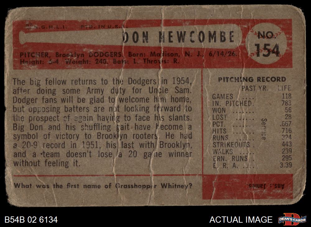 1954 Bowman #154 Don Newcombe AUTHENTIC