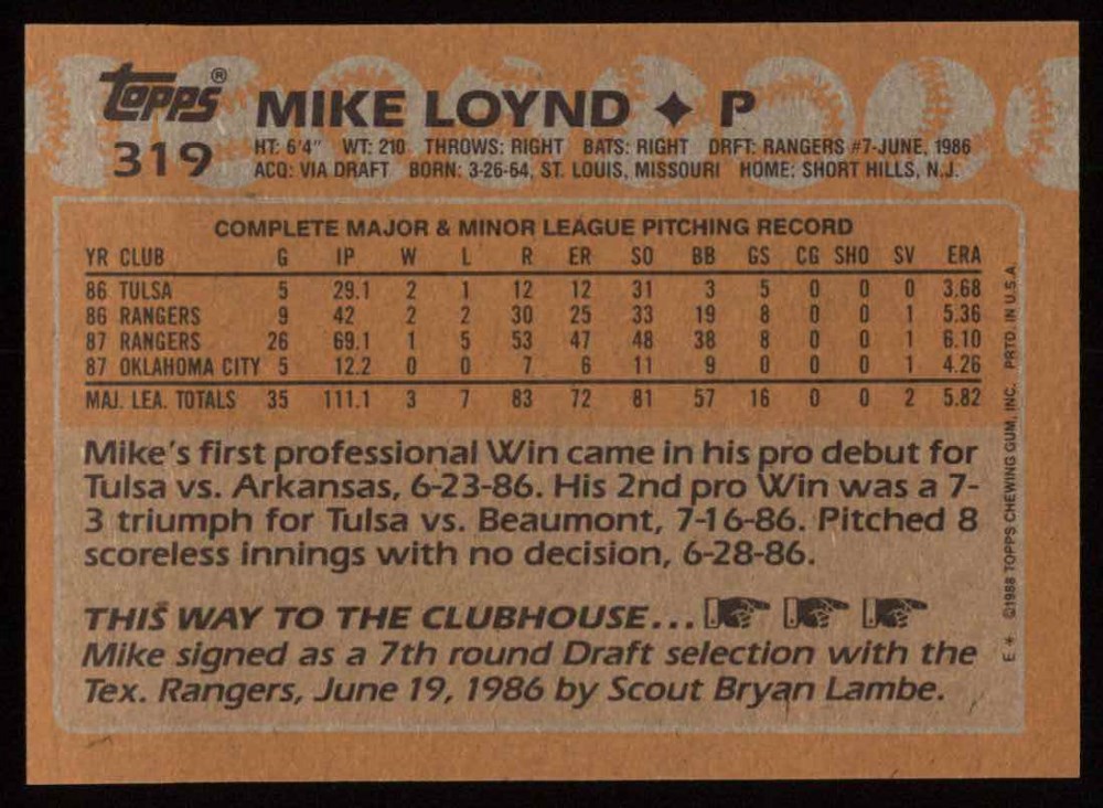1988 Topps #319 Mike Loynd 8 - NM/MT