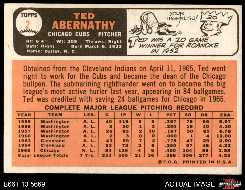 1966 Topps #2 Ted Abernathy